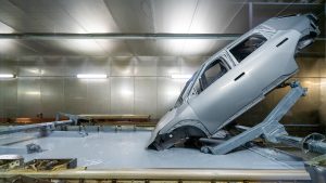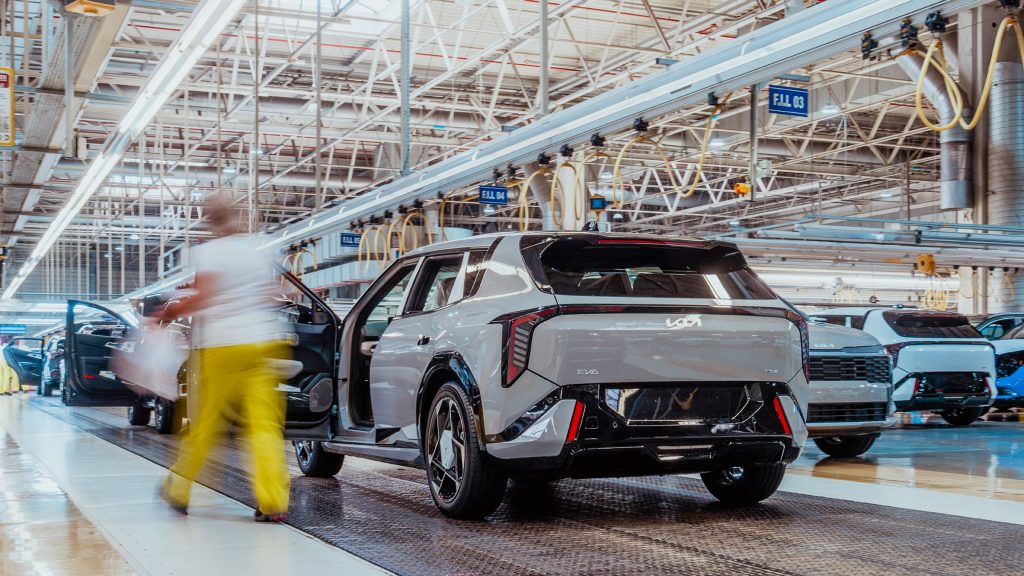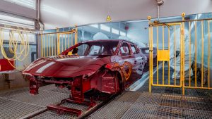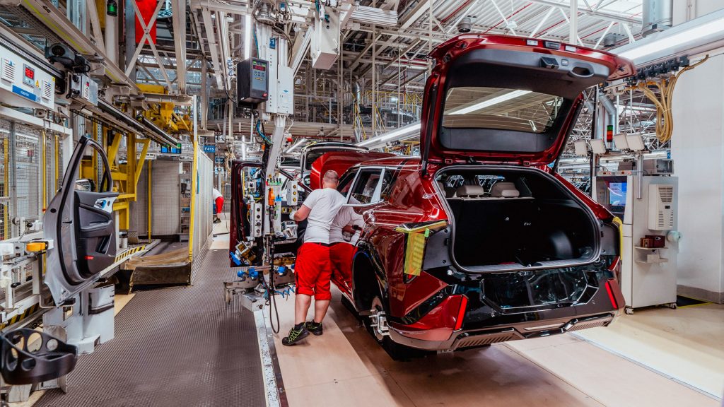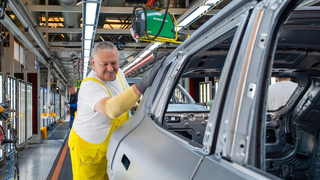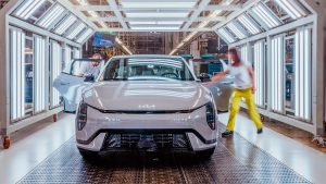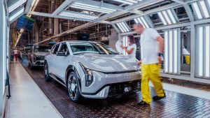 PGEgaHJlZj0iaHR0cHM6Ly93d3cua2lhLmNvbS9odS9tb2RlbGxlay9ldjQvYmVtdXRhdG8vP3V0bV9zb3VyY2U9bGVhZGJhbm5lciZ1dG1fbWVkaXVtPWxlYWRiYW5uZXImdXRtX2NhbXBhaWduPWV2NHZpbGxhbnlhdXRvc29rJnV0bV9pZD12aWxsYW55YXV0b3NvayIgb25jbGljaz0iamF2YXNjcmlwdDp3aW5kb3cub3BlbignaHR0cHM6Ly93d3cua2lhLmNvbS9odS9tb2RlbGxlay9ldjQvYmVtdXRhdG8vP3V0bV9zb3VyY2U9bGVhZGJhbm5lciZ1dG1fbWVkaXVtPWxlYWRiYW5uZXImdXRtX2NhbXBhaWduPWV2NHZpbGxhbnlhdXRvc29rJnV0bV9pZD12aWxsYW55YXV0b3NvaycsICdfYmxhbmsnLCAnbm9vcGVuZXInKTsgcmV0dXJuIGZhbHNlOyI+PHBpY3R1cmU+PHNvdXJjZSBzcmNzZXQ9Imh0dHBzOi8vdmlsbGFueWF1dG9zb2suaHUvd3AtY29udGVudC91cGxvYWRzLzIwMjUvMTEva2lhLWV2NC1ub3YtNjAweDUwMC0xLnBuZyIgbWVkaWE9IihtYXgtd2lkdGg6IDcwMHB4KSI+PHNvdXJjZSBzcmNzZXQ9Imh0dHBzOi8vdmlsbGFueWF1dG9zb2suaHUvd3AtY29udGVudC91cGxvYWRzLzIwMjUvMTEva2lhLWV2NC1ub3YtMTMwMHg2MDAtMS5wbmciIG1lZGlhPSIobWluLXdpZHRoOiA3MDBweCkiPjxpbWcgc3JjPSJodHRwczovL3ZpbGxhbnlhdXRvc29rLmh1L3dwLWNvbnRlbnQvdXBsb2Fkcy8yMDI1LzExL2tpYS1ldjQtbm92LTEzMDB4NjAwLTEucG5nIiBhbHQ9IiI+PC9waWN0dXJlPjwvYT4= Egyes autógyártók kommunikációjából és gyárépítési terveiből könnyű úgy gondolni, hogy az elektromos autók gyártására való átálláshoz a cégeknek teljesen új üzemeket kell építeniük. A valóság azonban ennél jóval racionálisabb: a modern autógyárak többsége már most is úgy működik, hogy minimális átalakítással képes bármilyen hajtásrendszerű autót összeszerelni. Ennek kiváló példája a szlovákiai Zsolnán működő Kia gyár, ahol idén már az új, tisztán elektromos EV4 is legördül a futószalagról – ugyanazon a gyártósoron, ahol eddig a Sportage és a Ceed belső égésű erőforrással hajtott különböző variánsai készültek. A két évvel ezelőtti vizitünk után ide kaptunk ismét meghívást egy gyárlátogatásra PGEgaHJlZj0iaHR0cHM6Ly93d3cuc2tvZGEuaHUvZWxyb3EvZWxyb3EiIG9uY2xpY2s9ImphdmFzY3JpcHQ6d2luZG93Lm9wZW4oJ2h0dHBzOi8vd3d3LnNrb2RhLmh1L2Vscm9xL2Vscm9xJywgJ19ibGFuaycsICdub29wZW5lcicpOyByZXR1cm4gZmFsc2U7Ij48cGljdHVyZT48c291cmNlIHNyY3NldD0iaHR0cHM6Ly92aWxsYW55YXV0b3Nvay5odS93cC1jb250ZW50L3VwbG9hZHMvMjAyNS8xMS9jdXRvdXQtZWxyb3EtMTIwMHgxNjAwLTEuanBnIiBtZWRpYT0iKG1pbi13aWR0aDogNzAwcHgpIj48aW1nIHNyYz0iaHR0cHM6Ly92aWxsYW55YXV0b3Nvay5odS93cC1jb250ZW50L3VwbG9hZHMvMjAyNS8xMS9jdXRvdXQtZWxyb3EtMTIwMHgxNjAwLTEuanBnIiBhbHQ9IiI+PC9waWN0dXJlPjwvYT4=PGEgaHJlZj0iaHR0cHM6Ly93d3cuc2tvZGEuaHUvYXotdWotZW55YXEvZW55YXEiIG9uY2xpY2s9ImphdmFzY3JpcHQ6d2luZG93Lm9wZW4oJ2h0dHBzOi8vd3d3LnNrb2RhLmh1L2F6LXVqLWVueWFxL2VueWFxJywgJ19ibGFuaycsICdub29wZW5lcicpOyByZXR1cm4gZmFsc2U7Ij48cGljdHVyZT48c291cmNlIHNyY3NldD0iaHR0cHM6Ly92aWxsYW55YXV0b3Nvay5odS93cC1jb250ZW50L3VwbG9hZHMvMjAyNS8xMS9jdXRvdXQtZW55YXEtMTIwMHgxNjAwLTEuanBnIiBtZWRpYT0iKG1pbi13aWR0aDogNzAwcHgpIj48aW1nIHNyYz0iaHR0cHM6Ly92aWxsYW55YXV0b3Nvay5odS93cC1jb250ZW50L3VwbG9hZHMvMjAyNS8xMS9jdXRvdXQtZW55YXEtMTIwMHgxNjAwLTEuanBnIiBhbHQ9IiI+PC9waWN0dXJlPjwvYT4=PGEgaHJlZj0iaHR0cHM6Ly93d3cuc2tvZGEuaHUvc3VwZXJiLWNvbWJpL3N1cGVyYi1jb21iaS0xIiBvbmNsaWNrPSJqYXZhc2NyaXB0OndpbmRvdy5vcGVuKCdodHRwczovL3d3dy5za29kYS5odS9zdXBlcmItY29tYmkvc3VwZXJiLWNvbWJpLTEnLCAnX2JsYW5rJywgJ25vb3BlbmVyJyk7IHJldHVybiBmYWxzZTsiPjxwaWN0dXJlPjxzb3VyY2Ugc3Jjc2V0PSJodHRwczovL3ZpbGxhbnlhdXRvc29rLmh1L3dwLWNvbnRlbnQvdXBsb2Fkcy8yMDI1LzExL2N1dG91dC1zdXBlcmItMTIwMHgxNjAwLTJ1ai0yMDI1LTA5LTMwLmpwZyIgbWVkaWE9IihtaW4td2lkdGg6IDcwMHB4KSI+PGltZyBzcmM9Imh0dHBzOi8vdmlsbGFueWF1dG9zb2suaHUvd3AtY29udGVudC91cGxvYWRzLzIwMjUvMTEvY3V0b3V0LXN1cGVyYi0xMjAweDE2MDAtMnVqLTIwMjUtMDktMzAuanBnIiBhbHQ9IiI+PC9waWN0dXJlPjwvYT4= Egy gyár, ami előre gondolkodott A zsolnai üzemben 2006-ban indult a gyártás, és azóta több mint ötmillió autó hagyta el a gyárkaput. Az elmúlt közel két évtizedben természetesen többször volt modellváltás és ezek miatt a gyártósorhoz is többször hozzá kellett nyúlni, de a gyár működése alapvetően nem változott. Az utóbbi években a gyártásba érkező elektromos modellekre való felkészülés adta a legtöbb feladatot. A felkészülésre 108 millió eurót költöttek, de sem új épületre, sem a már meglévők komoly átalakítására nem volt szükség. Elég volt újraprogramozni a robotokat, megerősíteni a futószalagokat az 500 kilogrammos akkumulátorok mozgatásához, és kiépíteni a nagy teljesítményű töltőállomásokat, hogy az elkészült autók tesztelése is zökkenőmentesen menjen. Némi átalakítást persze olyan újdonságok is igényeltek, mint az EV4-gyel megjelenő alumínium motorháztető és a szintén ennél a modellnél bevezetett matt fényezés, de ezek hajtáslánctól függetlenül is megjelenhettek volna a gyártási folyamatban. A gyártósoron a robotok és az emberek egyaránt 48-50 másodperces ciklusidővel dolgoznak, aminek az eredményeként átlagosan 65 autó készül el óránként. A gyár kapacitása normál, heti ötnapos és három műszakos munkarendben 350 ezer autó, de hétvégi pótműszakok beiktatásával tavaly rekord mennyiségű, 351.270 autót gyártottak. A hétvége persze ideális esetben a karbantartásé, olyankor nem zajlik termelés. A gyártósorok évente egyszer, július utolsó és augusztus első hetében állnak, ami alatt megtörténik a szükséges módosítás az új modellek fogadására. Ahhoz, hogy idén elindulhasson az EV4 gyártása, tavaly nyáron kellett felkészíteni az üzemet, idén pedig az EV2 érkezéséhez végezték el a szükséges módosításokat. Az új, végleges formájában még be sem mutatott modell első előszériás példányai már ott álltak a gyárban, természetesen ügyesen elrejtve a mi kíváncsi szemeink elől. Robotok, acél és precizitás Ahogy az lenni szokott, a karosszériaüzem a gyár legrobotizáltabb része: itt bő 300 ember felügyeli és segíti a több mint 3900 robot munkáját. A robotok túlnyomó részét a Hyundai robotikában érdekelt leányvállalata gyártja, így tulajdonképpen házon belülről érkezik ez a tudás is. A karosszéria-összeállító állomáson két géppel összesen nyolcféle ka