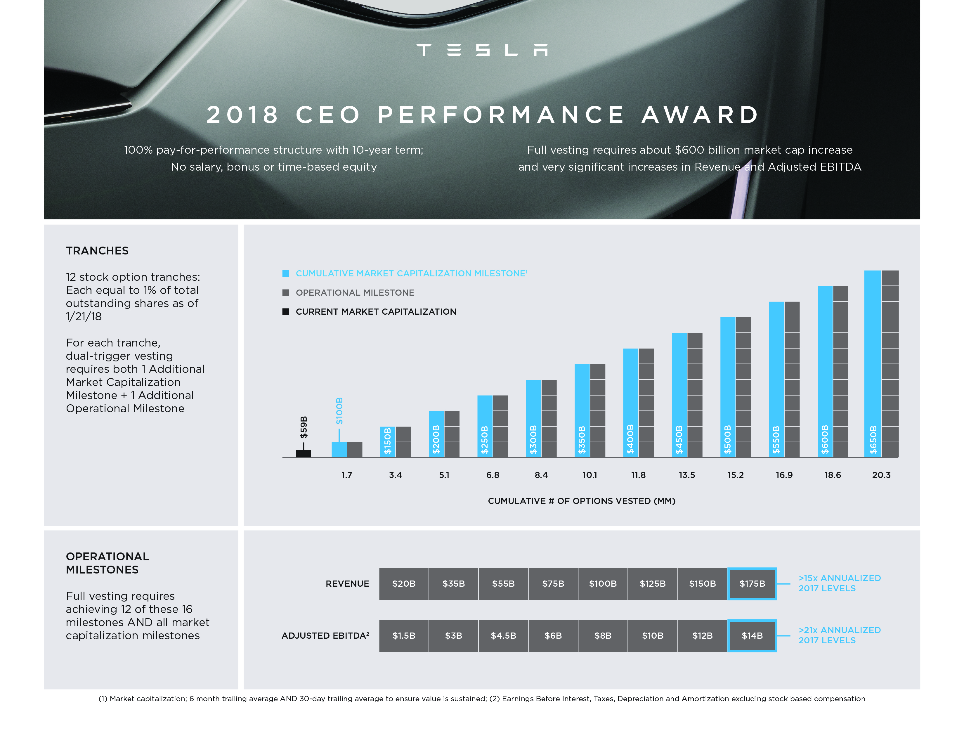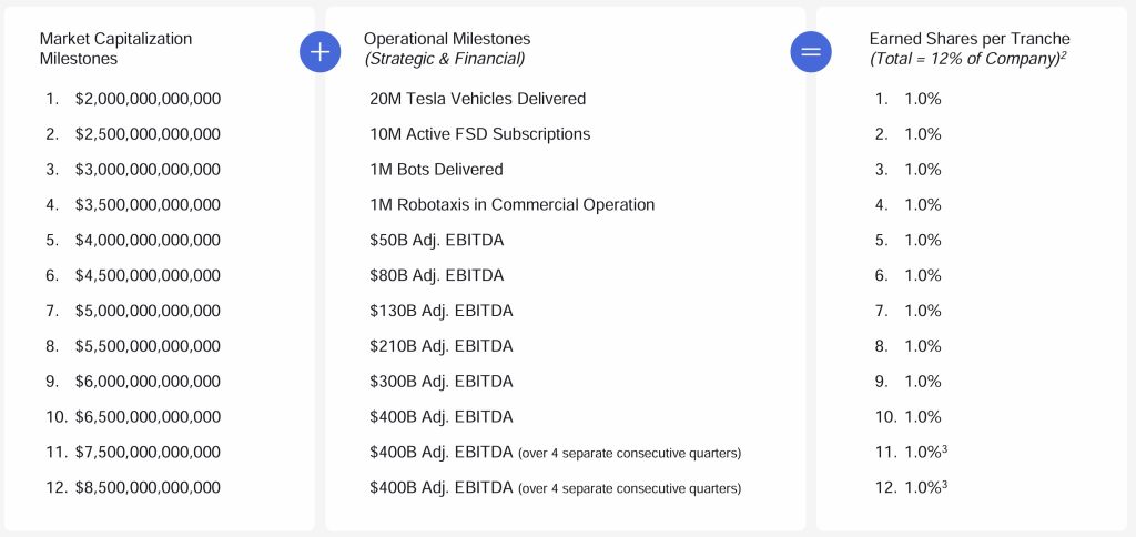 PGEgaHJlZj0iaHR0cHM6Ly9hZC5kb3VibGVjbGljay5uZXQvZGRtL3RyYWNrY2xrL040MDIyLjM3MzM0MjhWSUxMQU5ZQVVUT1NPSy5IVTAvQjM0NDQwNjM5LjQzMTY5MDE3NTtkY190cmtfYWlkPTYyNDI2NjY4NDtkY190cmtfY2lkPTI0MzYwNjI0NjtkY19sYXQ9O2RjX3JkaWQ9O3RhZ19mb3JfY2hpbGRfZGlyZWN0ZWRfdHJlYXRtZW50PTt0ZnVhPTtnZHByPSRHRFBSO2dkcHJfY29uc2VudD0kR0RQUl9DT05TRU5UXzc1NTtsdGQ9O2RjX3Rkdj0xIiBvbmNsaWNrPSJqYXZhc2NyaXB0OndpbmRvdy5vcGVuKCdodHRwczovL2FkLmRvdWJsZWNsaWNrLm5ldC9kZG0vdHJhY2tjbGsvTjQwMjIuMzczMzQyOFZJTExBTllBVVRPU09LLkhVMC9CMzQ0NDA2MzkuNDMxNjkwMTc1O2RjX3Rya19haWQ9NjI0MjY2Njg0O2RjX3Rya19jaWQ9MjQzNjA2MjQ2O2RjX2xhdD07ZGNfcmRpZD07dGFnX2Zvcl9jaGlsZF9kaXJlY3RlZF90cmVhdG1lbnQ9O3RmdWE9O2dkcHI9JEdEUFI7Z2Rwcl9jb25zZW50PSRHRFBSX0NPTlNFTlRfNzU1O2x0ZD07ZGNfdGR2PTEnLCAnX2JsYW5rJywgJ25vb3BlbmVyJyk7IHJldHVybiBmYWxzZTsiPjxwaWN0dXJlPjxzb3VyY2Ugc3Jjc2V0PSJodHRwczovL3ZpbGxhbnlhdXRvc29rLmh1L3dwLWNvbnRlbnQvdXBsb2Fkcy8yMDI1LzEwL2xlYWQtbW9iaWwtbGVhcC1jMTAtNjAweDUwMC02LmpwZyIgbWVkaWE9IihtYXgtd2lkdGg6IDcwMHB4KSI+PHNvdXJjZSBzcmNzZXQ9Imh0dHBzOi8vdmlsbGFueWF1dG9zb2suaHUvd3AtY29udGVudC91cGxvYWRzLzIwMjUvMTAvbGVhZC1kZXNrdG9wLWxlYXAtYzEwLTEzMDB4NjAwLTEuanBnIiBtZWRpYT0iKG1pbi13aWR0aDogNzAwcHgpIj48aW1nIHNyYz0iaHR0cHM6Ly92aWxsYW55YXV0b3Nvay5odS93cC1jb250ZW50L3VwbG9hZHMvMjAyNS8xMC9sZWFkLWRlc2t0b3AtbGVhcC1jMTAtMTMwMHg2MDAtMS5qcGciIGFsdD0iIj48L3BpY3R1cmU+PC9hPjxJRlJBTUUgU1JDPSJodHRwczovL2FkLmRvdWJsZWNsaWNrLm5ldC9kZG0vdHJhY2tpbXBpL040MDIyLjM3MzM0MjhWSUxMQU5ZQVVUT1NPSy5IVTAvQjM0NDQwNjM5LjQzMTY5MDE3NTtkY190cmtfYWlkPTYyNDI2NjY4NDtkY190cmtfY2lkPTI0MzYwNjI0NjtvcmQ9W3RpbWVzdGFtcF07ZGNfbGF0PTtkY19yZGlkPTt0YWdfZm9yX2NoaWxkX2RpcmVjdGVkX3RyZWF0bWVudD07dGZ1YT07Z2Rwcj0ke0dEUFJ9O2dkcHJfY29uc2VudD0ke0dEUFJfQ09OU0VOVF83NTV9O2x0ZD07ZGNfdGR2PTE/IiBXSURUSD0xIEhFSUdIVD0xIE1BUkdJTldJRFRIPTAgTUFSR0lOSEVJR0hUPTAgSFNQQUNFPTAgVlNQQUNFPTAgRlJBTUVCT1JERVI9MCBTQ1JPTExJTkc9bm8gQk9SREVSQ09MT1I9JyMwMDAwMDAnPjwvSUZSQU1FPg==PGEgaHJlZj0iaHR0cHM6Ly9hZC5kb3VibGVjbGljay5uZXQvZGRtL3RyYWNrY2xrL040MDIyLjM3MzM0MjhWSUxMQU5ZQVVUT1NPSy5IVTAvQjM0NDQwNjM5LjQzMTY5MDE3ODtkY190cmtfYWlkPTYyNDI2NjY3ODtkY190cmtfY2lkPTI0MzAzNzUzMjtkY19sYXQ9O2RjX3JkaWQ9O3RhZ19mb3JfY2hpbGRfZGlyZWN0ZWRfdHJlYXRtZW50PTt0ZnVhPTtnZHByPSRHRFBSO2dkcHJfY29uc2VudD0kR0RQUl9DT05TRU5UXzc1NTtsdGQ9O2RjX3Rkdj0xIiBvbmNsaWNrPSJqYXZhc2NyaXB0OndpbmRvdy5vcGVuKCdodHRwczovL2FkLmRvdWJsZWNsaWNrLm5ldC9kZG0vdHJhY2tjbGsvTjQwMjIuMzczMzQyOFZJTExBTllBVVRPU09LLkhVMC9CMzQ0NDA2MzkuNDMxNjkwMTc4O2RjX3Rya19haWQ9NjI0MjY2Njc4O2RjX3Rya19jaWQ9MjQzMDM3NTMyO2RjX2xhdD07ZGNfcmRpZD07dGFnX2Zvcl9jaGlsZF9kaXJlY3RlZF90cmVhdG1lbnQ9O3RmdWE9O2dkcHI9JEdEUFI7Z2Rwcl9jb25zZW50PSRHRFBSX0NPTlNFTlRfNzU1O2x0ZD07ZGNfdGR2PTEnLCAnX2JsYW5rJywgJ25vb3BlbmVyJyk7IHJldHVybiBmYWxzZTsiPjxwaWN0dXJlPjxzb3VyY2Ugc3Jjc2V0PSJodHRwczovL3ZpbGxhbnlhdXRvc29rLmh1L3dwLWNvbnRlbnQvdXBsb2Fkcy8yMDI1LzEwL2xlYWQtbW9iaWwtbGVhcG1vdG9yLXQwMy02MDB4NTAwLTQuanBnIiBtZWRpYT0iKG1heC13aWR0aDogNzAwcHgpIj48c291cmNlIHNyY3NldD0iaHR0cHM6Ly92aWxsYW55YXV0b3Nvay5odS93cC1jb250ZW50L3VwbG9hZHMvMjAyNS8xMC9sZWFkLWRlc2t0b3AtbGVhcC10MDMtMTMwMHg2MDAtMS5qcGciIG1lZGlhPSIobWluLXdpZHRoOiA3MDBweCkiPjxpbWcgc3JjPSJodHRwczovL3ZpbGxhbnlhdXRvc29rLmh1L3dwLWNvbnRlbnQvdXBsb2Fkcy8yMDI1LzEwL2xlYWQtZGVza3RvcC1sZWFwLXQwMy0xMzAweDYwMC0xLmpwZyIgYWx0PSIiPjwvcGljdHVyZT48L2E+PElGUkFNRSBTUkM9Imh0dHBzOi8vYWQuZG91YmxlY2xpY2submV0L2RkbS90cmFja2ltcGkvTjQwMjIuMzczMzQyOFZJTExBTllBVVRPU09LLkhVMC9CMzQ0NDA2MzkuNDMxNjkwMTc4O2RjX3Rya19haWQ9NjI0MjY2Njc4O2RjX3Rya19jaWQ9MjQzMDM3NTMyO29yZD1bdGltZXN0YW1wXTtkY19sYXQ9O2RjX3JkaWQ9O3RhZ19mb3JfY2hpbGRfZGlyZWN0ZWRfdHJlYXRtZW50PTt0ZnVhPTtnZHByPSR7R0RQUn07Z2Rwcl9jb25zZW50PSR7R0RQUl9DT05TRU5UXzc1NX07bHRkPTtkY190ZHY9MT8iIFdJRFRIPTEgSEVJR0hUPTEgTUFSR0lOV0lEVEg9MCBNQVJHSU5IRUlHSFQ9MCBIU1BBQ0U9MCBWU1BBQ0U9MCBGUkFNRUJPUkRFUj0wIFNDUk9MTElORz1ubyBCT1JERVJDT0xPUj0nIzAwMDAwMCc+PC9JRlJBTUU+ Elon Musk már nem először kap minden szempontból őrült ajánlatot a Teslától, de annak ellenére, hogy teljesítette az előző csomagjában vállaltakat, évek óta nem kap fizetést. Az új ajánlat viszont minden korábbinál nagyobb tétre megy, ha leszavazzák, akár ott is hagyhatja a céget. Blöff, vagy valós veszély? A Tesla részvényeseinek éves rendes közgyűlésére a héten, november 6-án kerül sor, ám a program kicsit izgalmasabbnak ígérkezik a szokásosnál. Az első pont ugyanis, amit szavazásra bocsátanak, az Elon Musk új kompenzációs csomagja. A Tesla 2025-ös CEO kompenzációs csomagja. A javaslat értelmében, Musknak 10 éven belül 12 lépésben járna 1-1 százaléknyi újabb Tesla részvény, amennyiben a Tesla piaci értéke és éves eredménye a mai sokszorosára nő, illetve egyéb feltételek is teljesülnek. Így például az első részvénycsomagot akkor kapja meg, ha a cég értéke a jelenleg 1,5 billió dollárról 2 billióra nő és a cég leszállította húszmilliomodik autóját – jelenleg 8,5 milliónál járnak. A második csomaghoz már az újabb piaci értéknövekedés mellett 10 millió aktív előfizető is kell a cég önvezető szoftverére, később pedig olyan elemek jönnek be, mint például egymillió Optimus robot leszállítása. A sor végén már 8,5 billiós piaci érték áll – ez az Apple mai értékének több mint duplája – és négy egymást követő negyedévben is 400 milliárd dollár feletti EBITDA eredményt kell elérniük. Ezek gyakorlatilag azt jelentik, hogy a Tesla nemcsak a világ legnagyobb értékű és legjövedelmezőbb cége kell, hogy legyen, de mindezt olyan szinten kell űznie, ami a mai napig példátlan a tőzsde történetében. A 11. és 12. csomag feltétel az is, hogy a Musk kidolgozza a CEO utódlás tervét. A részvénycsomagok kapcsán egyébként fontos megjegyezni, hogy ezek ténylegesen csak akkor kerülnek Musk tulajdonába, ha a megszerzésüket követő 7-10 éven belül a cégnél marad. Addig eladni, pénzé tenni nem tudja ezeket, ám szavazni már azonnal tud a segítségükkel, így 13 százalékos részesedése az igazgatótanács döntései alkalmával végül 25 százalékot is nyomhat a latba. Utóbbi azért lényeges, mert Musk többszö