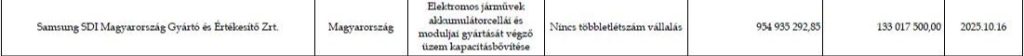 PGEgaHJlZj0iaHR0cHM6Ly93d3cua2lhLmNvbS9odS9tb2RlbGxlay9ldjQvYmVtdXRhdG8vP3V0bV9zb3VyY2U9bGVhZGJhbm5lciZ1dG1fbWVkaXVtPWxlYWRiYW5uZXImdXRtX2NhbXBhaWduPWV2NHZpbGxhbnlhdXRvc29rJnV0bV9pZD12aWxsYW55YXV0b3NvayIgb25jbGljaz0iamF2YXNjcmlwdDp3aW5kb3cub3BlbignaHR0cHM6Ly93d3cua2lhLmNvbS9odS9tb2RlbGxlay9ldjQvYmVtdXRhdG8vP3V0bV9zb3VyY2U9bGVhZGJhbm5lciZ1dG1fbWVkaXVtPWxlYWRiYW5uZXImdXRtX2NhbXBhaWduPWV2NHZpbGxhbnlhdXRvc29rJnV0bV9pZD12aWxsYW55YXV0b3NvaycsICdfYmxhbmsnLCAnbm9vcGVuZXInKTsgcmV0dXJuIGZhbHNlOyI+PHBpY3R1cmU+PHNvdXJjZSBzcmNzZXQ9Imh0dHBzOi8vdmlsbGFueWF1dG9zb2suaHUvd3AtY29udGVudC91cGxvYWRzLzIwMjUvMTEva2lhLWV2NC1ub3YtNjAweDUwMC0xLnBuZyIgbWVkaWE9IihtYXgtd2lkdGg6IDcwMHB4KSI+PHNvdXJjZSBzcmNzZXQ9Imh0dHBzOi8vdmlsbGFueWF1dG9zb2suaHUvd3AtY29udGVudC91cGxvYWRzLzIwMjUvMTEva2lhLWV2NC1ub3YtMTMwMHg2MDAtMS5wbmciIG1lZGlhPSIobWluLXdpZHRoOiA3MDBweCkiPjxpbWcgc3JjPSJodHRwczovL3ZpbGxhbnlhdXRvc29rLmh1L3dwLWNvbnRlbnQvdXBsb2Fkcy8yMDI1LzExL2tpYS1ldjQtbm92LTEzMDB4NjAwLTEucG5nIiBhbHQ9IiI+PC9waWN0dXJlPjwvYT4= Egy az állami támogatásokról kiadott minisztériumi listából derült ki, hogy a Samsung SDI 955 milliárd forintból bővíti hazai akkugyárát. A gödi projekt részletei nem ismertek, csak az biztos, hogy a magyar állam 133 milliárddal támogatja. Bővítés A Külgazdasági és Külügyminisztérium egyedi kormánydöntéssel adott támogatásainak listájáról a K-Monitor posztolt először november 16-án, majd ez alapján egy nappal később a Telex írta meg, hogy a Samsung SDI gödi gyárát egy 955 milliárd forintos beruházás keretében bővítik, az „elektromos járművek akkumulátorcellái és moduljai gyártását végző üzem kapacitásbővítését‟ pedig a magyar állam 133 milliárd forinttal támogatja. Az állami támogatás a gigaberuházásoknál nem ritka, sőt nemzetközileg is gyakori, ám furcsa, hogy a hírek szerint a Samsung semmilyen vállalást nem tett további munkahelyek teremtésére – általában hasonló ára szokott lenne az ilyen pénzügyi hozzájárulásnak. Forrás Kormány.hu, K-Monitor Facebook. A Telex emlékeztet, hogy 2020 óta a Samsung gödi akkugyára mintegy 54,4 milliárd forintnyi állami támogatást kapott, amiben nincs benne az üzem működéséhez szükséges infrastruktúrára költött pénz. Ahogy azt májusban egy koreai üzleti lap értesülésre hivatkozva megírtuk, a területen jelenleg zajló beruházásnak köszönhetően jövőre már a Hyundainak is szállít majd Göd – az újabb bővítés céljáról azonban egyelőre nincs részletes információ. Bővítik és modernizálják a gödi Samsung gyárat A Telex egy korábbi látványterv alapján azt írja, hogy a külügyminiszter egy idén júliusi Facebook posztjához csatolt kép már a nyáron elárulta, hogy az M2 autópálya és a gyár jelenlegi épületei közötti terület már korábban ki volt jelölve egy későbbi lehetséges bővítésre. Arról még 2023-ban írtunk, hogy a BMW és a Samsung megbeszéléseket folytatott egy esetleges harmadik gödi üzem építéséről, ahol hengeres cellák készülnének a debreceni autógyár részére. A BMW azóta már más beszállítókat bízott meg a Neue Klasse celláinak gyártásával, ráadásul az akkori hír a mostani összegnek csak a harmadát helyezte kilátásba, így egyáltalán nem biztos, hogy az új projekt a bajor cég megrendeléséhez kapcsolódik. Újabb akkugyárat épít a Samsung Gödön? Biró BalázsA fenntartható közlekedés elkötelezett híve, akit elsősorban a Tesla céltudatos és piacot felforgató tevékenysége rántott magával ebbe a világba, így publikációi elsősorban erre a területre koncentrálnak. Google hírek iratkozz fel! Heti hírlevél iratkozz fel! Kővédő fólia védd az autód!