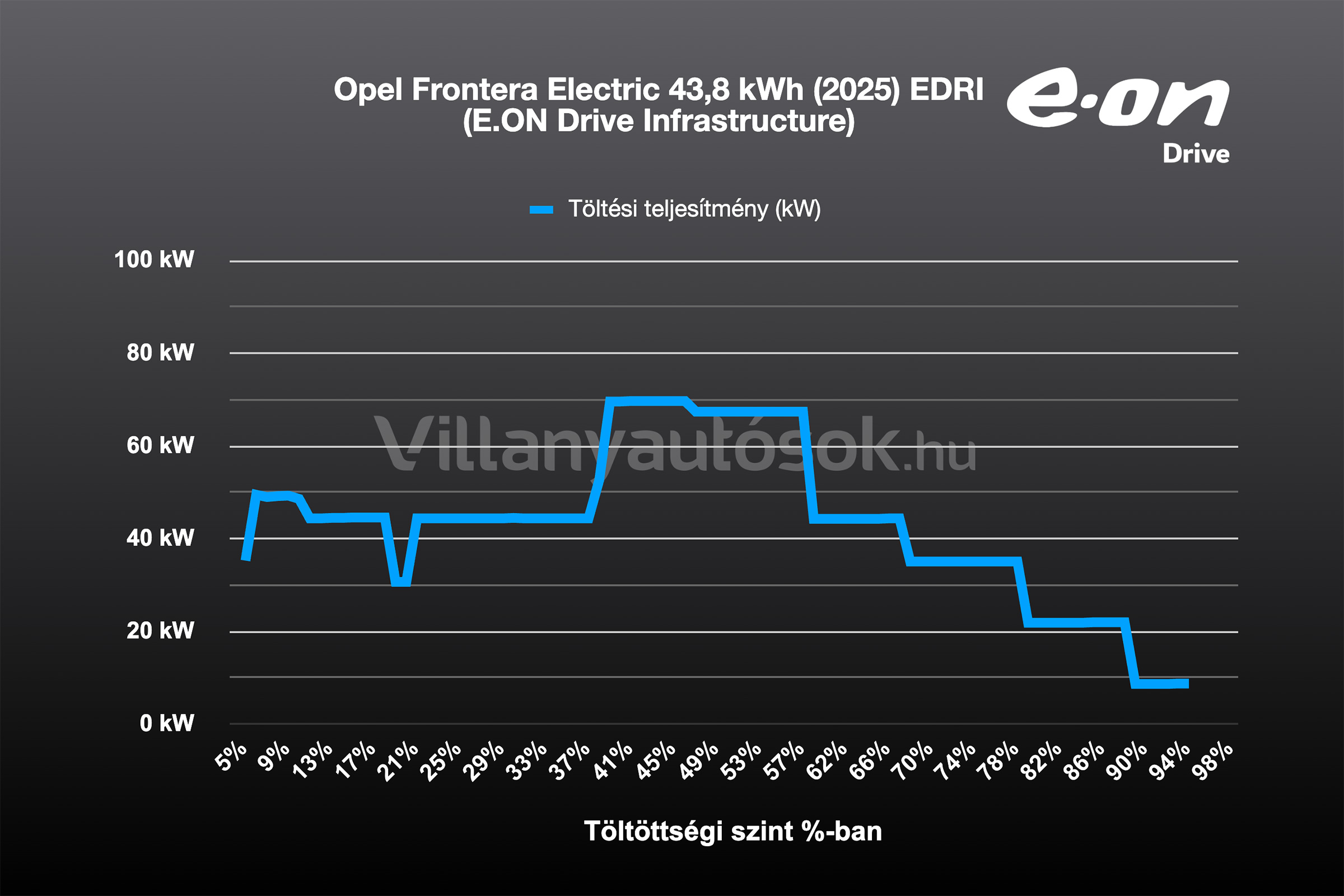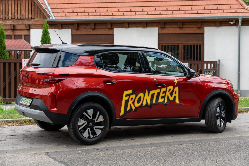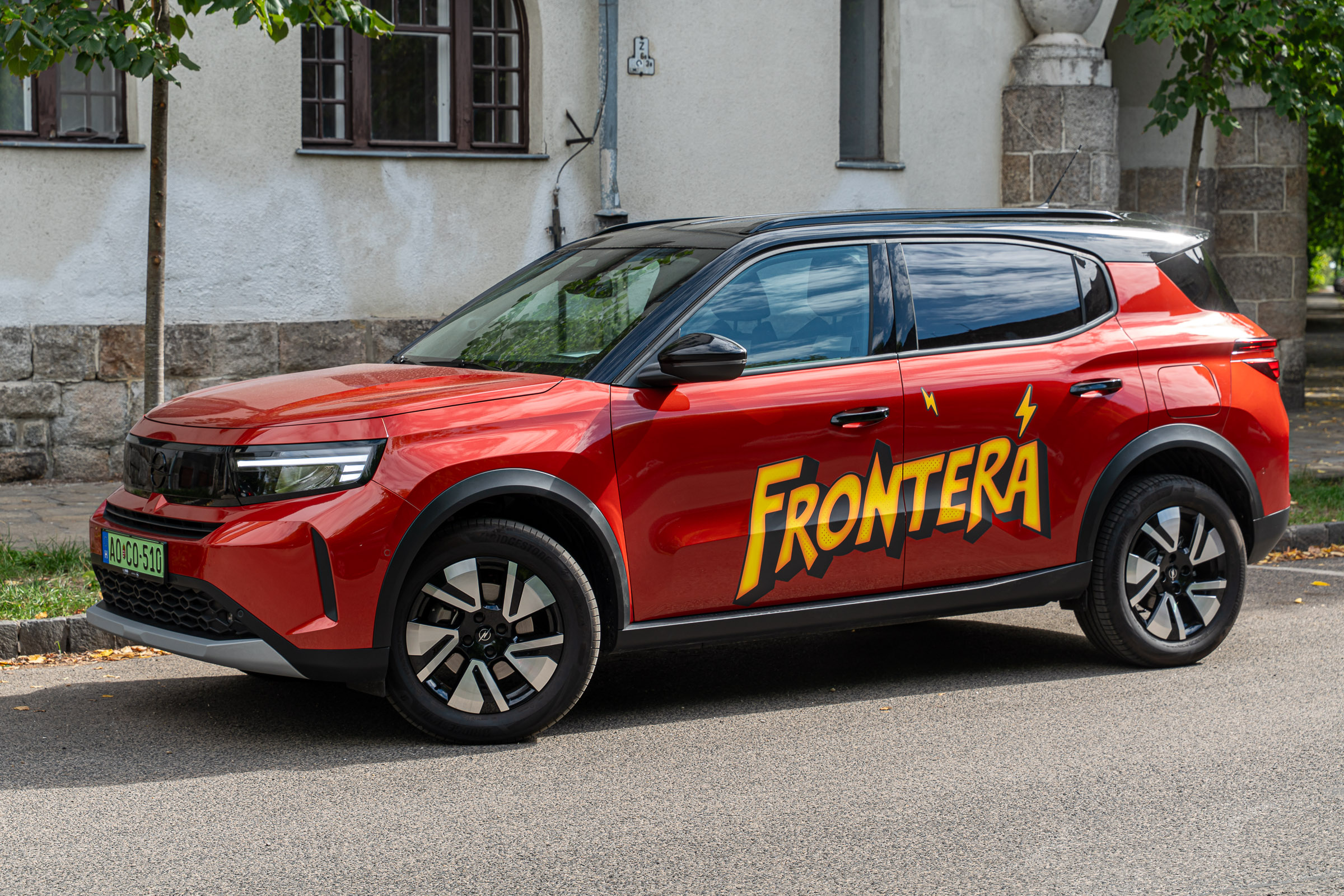 A régi márkanevek felmelegítése manapság divatos műfaj. A régi néven érkező új modellekkel lehet hatni az érzelmekre és az emlékekre, ami jelentősen megkönnyítheti az értékesítést. Kérdés, hogy ez működik-e akkor is, ha a frissen bemutatott jármű egy teljesen más kategóriába érkezik, mint az azonos néven évtizedekkel korábban sikeres elődje. Az Opel bevállalta, hogy kipróbálja, és az előzetes adatok alapján úgy tűnik, hogy a terv bevált: nyáron egy háttérbeszélgetésen kiderült, hogy az új Opel Fronterából rengeteget eladtak az első példányok megérkezése előtt, ráadásul a megrendelők negyede az elérhető hajtásláncok közül az elektromosat választotta. Nem rossz arány ez, amikor a magyar piacon még mindig 10% alatt van az akkumulátoros elektromos autók aránya. PGEgaHJlZj0iaHR0cHM6Ly93d3cudm9sdGllLmV1Lz91dG1fc291cmNlPXZpbGxhbnlhdXRvc29rJnV0bV9tZWRpdW09Y3V0b3V0JnV0bV9jYW1wYWlnbj1iYW5uZXIiIG9uY2xpY2s9ImphdmFzY3JpcHQ6d2luZG93Lm9wZW4oJ2h0dHBzOi8vd3d3LnZvbHRpZS5ldS8/dXRtX3NvdXJjZT12aWxsYW55YXV0b3NvayZ1dG1fbWVkaXVtPWN1dG91dCZ1dG1fY2FtcGFpZ249YmFubmVyJywgJ19ibGFuaycsICdub29wZW5lcicpOyByZXR1cm4gZmFsc2U7Ij48cGljdHVyZT48c291cmNlIHNyY3NldD0iaHR0cHM6Ly92aWxsYW55YXV0b3Nvay5odS93cC1jb250ZW50L3VwbG9hZHMvMjAyNS8xMS92b2x0aWUtYmxhY2stZnJpZGF5LWN1dG91dC0xMjAweDE2MDAtMS5qcGVnIiBtZWRpYT0iKG1pbi13aWR0aDogNzAwcHgpIj48aW1nIHNyYz0iaHR0cHM6Ly92aWxsYW55YXV0b3Nvay5odS93cC1jb250ZW50L3VwbG9hZHMvMjAyNS8xMS92b2x0aWUtYmxhY2stZnJpZGF5LWN1dG91dC0xMjAweDE2MDAtMS5qcGVnIiBhbHQ9IiI+PC9waWN0dXJlPjwvYT4= Az új Opel Frontera a Stellantis Smart Car platformjára épül, ami a B és C szegmensbe szánt autók alapjaként szolgál a konszern számos márkájánál. Ez a rendszer a tisztán elektromos hajtáslánc mellett hibrid és kizárólag belső égésű motorral szerelt változat megépítését is lehetővé teszi. A másik különlegessége, hogy többféle tengelytávú autó is építhető rá, így a Fronteránál kisebb autóknak is megfelelő alapot ad. Furcsa szerzet a Frontera, mert bár elsőre kicsinek tűnhet, ha mellétesszük az ugyanarra a platformra készülő Citroën ë-C3-at, akkor látszik igazán, hogy mennyire nagy valójában. Bár hagyományos hajtással a Frontera akár 7 üléses változatban is megrendelhető, túl sok helyre a leghátul ülők ne számítsanak. Elektromos hajtással csak 5 üléssel kapható. Az Opel Frontera külső méreteit tekintve inkább a BYD Atto 2-vel van pariban. A BYD listaáron ugyan drágább, de az elérhető kedvezményeket is figyelembe véve már nincs akkora különbség az autók árai között. A Kia EV3 szintén nagyon hasonló méretben, de árát és tudását tekintve már egy kategóriával fentebb játszik. A Frontera a Kia tágasságát nyújthatja egy alacsonyabb árszinten. A Ford Puma Gen-E külső méreteit tekintve ugyan egy kisebb autó, de óriási csomagtartója miatt bizonyos helyzetekben mégis alternatíva lehet. Opel Frontera Electric BYD Atto 2 Citroën ë-C3 Kia EV3 SR Ford Puma Hosszúság (mm) 4383 4310 4015 4300 4214 Szélesség (mm) 1795 1830 1755 1850 1805 Magasság (mm) 1660 1675 1577 1560 1555 Tengelytáv (mm) 2670 2620 2540 2680 2580 Tömeg (kg) 1589 1645 1491 1800 1563 Csomagtartó (liter) 460 400 310 460+25 523+43 Ülések száma 5 5 5 5 5 Fordulókör (m) 10,9 11,5 10,3 10,4 10,5 Akkukapacitás (kWh, nettó) 43,8 45,1 44 55 43,6 WLTP hatótáv (km) 305 312 326 414 347 Végsebesség (km/h) 143 160 135 170 160 Motor teljesítmény (kW) 83 130 83 150 124 Motor teljesítmény (LE) 113 177 113 204 169 Motor nyomaték (Nm) 125 290 120 283 290 Töltési teljesítmény (kW) 100 65 100 100 100 A 90-es évek elején bemutatott Opel Frontera egy vérbeli terepjáró volt Isuzu alapokra építve. Ezzel szemben az új Frontera egy legalább egy méretosztállyal kisebb városi SUV, ami még mutatóban sem rendelhető összkerékhajtással. A néven kívül tényleg nem sok kapcsolat van a két modell között. A cikkben szereplő tesztautó a két felszereltségi szint közül a magasabb, GS jelölésű volt. Az Opel Frontera a B SUV szegmensbe tartozik, vagyis egy közepes méretű családi autó tágas belteret ígérő megemelt vagy magas karosszériával. Nagyjából az a szegmens, amit évekig hanyagoltak az autógyártók, és amit kapni is lehetett ilyen paraméterekkel, az jóval drágább volt, mint amennyit a többség egy ilyen autóra szánni tud. Bár a mai Opelekre jellemző orrkialakítás alapján könnyű a német gyártóhoz sorolni, ha azt letakarjuk, akkor nehéz megmondani, hogy egy Fronterát vagy egy Citroën ë-C3 Aircrosst látunk-e. De ez persze nem feltétlen baj. A Frontera divatos, kellemes külsőt kapott, ami nem feltűnősködik, inkább nyugalmat, kiforrottságot igyekszik sugallni. A formavilág egyértelműen jól sikerült, az Opel a Fronterával a kis városi SUV-re vágyó tömegek igényeit igyekszik kielégíteni. A 460 literes csomagtartó a valóságban sem tűnik kicsinek, pláne, ha az álpadlót az alsó állásba tesszük. Normál pozícióban elrejthetők alatta az autó kötelező tartozékai (töltőkábelek, háromszög, egészségügyi doboz, stb.), és az ülések háttámlájának lehajtása után közel sík padlót is biztosít nagyobb tárgyak szállításához. A második üléssor háttámlái 66:33 arányban osztva is lehajthatók, így három és négy utas mellett is szállíthatók hosszabb tárgyak. A kemény kalaptartónak ilyenkor nincs dedikált hely, azt érdemes otthon hagyni. Hogy egy elérhető árú autónál milyen apróságokon kell spórolni, azt a hátsó szélvédő fűtőszálának csatlakozója is mutatja. Ilyen szabadon álló csatlakozást ma már ritkán látunk villanyautóban. A többféle hajtásláncra tervezett platformok hátulütője, hogy a motor és a hozzá kapcsolódó elektronika rendszerint kitölti az autó orrát, így ott általában már nincs lehetőség első csomagtartó (fr