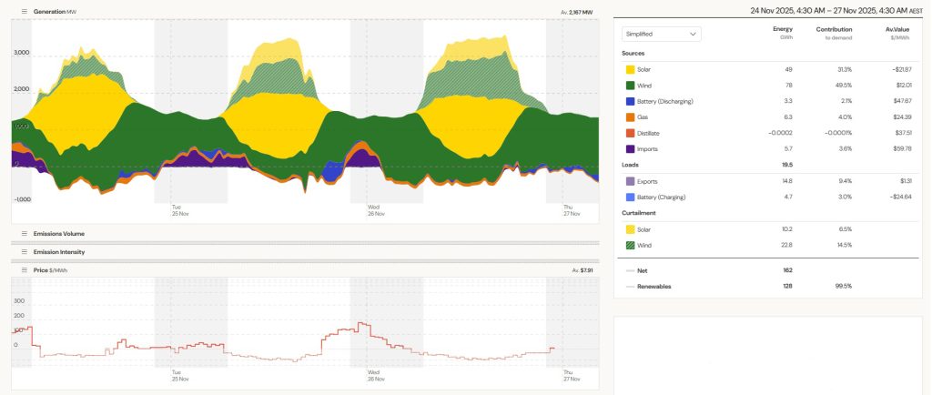 PGEgaHJlZj0iaHR0cHM6Ly93d3cuc2tvZGEuaHUvZWxyb3EvZWxyb3EiIG9uY2xpY2s9ImphdmFzY3JpcHQ6d2luZG93Lm9wZW4oJ2h0dHBzOi8vd3d3LnNrb2RhLmh1L2Vscm9xL2Vscm9xJywgJ19ibGFuaycsICdub29wZW5lcicpOyByZXR1cm4gZmFsc2U7Ij48cGljdHVyZT48c291cmNlIHNyY3NldD0iaHR0cHM6Ly92aWxsYW55YXV0b3Nvay5odS93cC1jb250ZW50L3VwbG9hZHMvMjAyNS8xMS9sZWFkLWVscm9xLWJhbm5lci1kdXBsYS02MDB4NTAwLW1vYmlsLmpwZyIgbWVkaWE9IihtYXgtd2lkdGg6IDcwMHB4KSI+PHNvdXJjZSBzcmNzZXQ9Imh0dHBzOi8vdmlsbGFueWF1dG9zb2suaHUvd3AtY29udGVudC91cGxvYWRzLzIwMjUvMTEvbGVhZC1lbHJvcS1iYW5uZXItZHVwbGEtMTMwMHg2MDAtZGVza3RvcC5qcGciIG1lZGlhPSIobWluLXdpZHRoOiA3MDBweCkiPjxpbWcgc3JjPSJodHRwczovL3ZpbGxhbnlhdXRvc29rLmh1L3dwLWNvbnRlbnQvdXBsb2Fkcy8yMDI1LzExL2xlYWQtZWxyb3EtYmFubmVyLWR1cGxhLTEzMDB4NjAwLWRlc2t0b3AuanBnIiBhbHQ9IiI+PC9waWN0dXJlPjwvYT4=PGEgaHJlZj0iaHR0cHM6Ly93d3cuc2tvZGEuaHUvYXotdWotZW55YXEvZW55YXEiIG9uY2xpY2s9ImphdmFzY3JpcHQ6d2luZG93Lm9wZW4oJ2h0dHBzOi8vd3d3LnNrb2RhLmh1L2F6LXVqLWVueWFxL2VueWFxJywgJ19ibGFuaycsICdub29wZW5lcicpOyByZXR1cm4gZmFsc2U7Ij48cGljdHVyZT48c291cmNlIHNyY3NldD0iaHR0cHM6Ly92aWxsYW55YXV0b3Nvay5odS93cC1jb250ZW50L3VwbG9hZHMvMjAyNS8xMS92aWxsYW55b3NhdXRvLW9ubGluZS1jc29tYWctZW55YXEtbGVhZC1iYW5uZXItMzAweDI1MC0xLmpwZyIgbWVkaWE9IihtYXgtd2lkdGg6IDcwMHB4KSI+PHNvdXJjZSBzcmNzZXQ9Imh0dHBzOi8vdmlsbGFueWF1dG9zb2suaHUvd3AtY29udGVudC91cGxvYWRzLzIwMjUvMTEvbGVhZC1lbnlhcS1iYW5uZXItZHVwbGEtMTMwMHg2MDAtZGVza3RvcC5qcGciIG1lZGlhPSIobWluLXdpZHRoOiA3MDBweCkiPjxpbWcgc3JjPSJodHRwczovL3ZpbGxhbnlhdXRvc29rLmh1L3dwLWNvbnRlbnQvdXBsb2Fkcy8yMDI1LzExL2xlYWQtZW55YXEtYmFubmVyLWR1cGxhLTEzMDB4NjAwLWRlc2t0b3AuanBnIiBhbHQ9IiI+PC9waWN0dXJlPjwvYT4=PGEgaHJlZj0iaHR0cHM6Ly93d3cuc2tvZGEuaHUvc3VwZXJiLWNvbWJpL3N1cGVyYi1jb21iaS0xIiBvbmNsaWNrPSJqYXZhc2NyaXB0OndpbmRvdy5vcGVuKCdodHRwczovL3d3dy5za29kYS5odS9zdXBlcmItY29tYmkvc3VwZXJiLWNvbWJpLTEnLCAnX2JsYW5rJywgJ25vb3BlbmVyJyk7IHJldHVybiBmYWxzZTsiPjxwaWN0dXJlPjxzb3VyY2Ugc3Jjc2V0PSJodHRwczovL3ZpbGxhbnlhdXRvc29rLmh1L3dwLWNvbnRlbnQvdXBsb2Fkcy8yMDI1LzExL3ZpbGxhbnlvc2F1dG8tb25saW5lLWNzb21hZy1zdXBlcmItbGVhZC1iYW5uZXItMzAweDI1MC0xLmpwZyIgbWVkaWE9IihtYXgtd2lkdGg6IDcwMHB4KSI+PHNvdXJjZSBzcmNzZXQ9Imh0dHBzOi8vdmlsbGFueWF1dG9zb2suaHUvd3AtY29udGVudC91cGxvYWRzLzIwMjUvMTEvdmlsbGFueW9zYXV0by1vbmxpbmUtY3NvbWFnLXN1cGVyYi1sZWFkLWJhbm5lci02NTB4MzAwLTEuanBnIiBtZWRpYT0iKG1pbi13aWR0aDogNzAwcHgpIj48aW1nIHNyYz0iaHR0cHM6Ly92aWxsYW55YXV0b3Nvay5odS93cC1jb250ZW50L3VwbG9hZHMvMjAyNS8xMS92aWxsYW55b3NhdXRvLW9ubGluZS1jc29tYWctc3VwZXJiLWxlYWQtYmFubmVyLTY1MHgzMDAtMS5qcGciIGFsdD0iIj48L3BpY3R1cmU+PC9hPg== Amikor nyolc évvel ezelőtt Dél-Ausztráliában átadták Hornsale-i akkumulátortelepet, sokan a Tesla PR-fogásának tartották a beruházást és csak legyintettek, mondván, a méretei eltörpülnek a hálózathoz képest, és a technológia egyébként is túl drága ahhoz, hogy elterjedjen. Azóta azonban sok víz lefolyt a Murray folyón, és a folyamatos fejlesztéseknek köszönhetően az állam november 25-én este egy figyelemre méltó új mérföldkőhöz érkezett: Ausztrália legfejlettebb megújulóenergia-hálózatában egy rövid ideig 40 százalékos részesedést ért el az energiatárolókból betáplált energia a helyi áramfelhasználáshoz képest. Az új mérföldkövet mind a GPE NEMLog, mind az Open Electricity rögzítette, ám a két hálózati adatszolgáltató kissé eltérő adatokat közölt – az előbbi 39,6 százalékot, az utóbbi 40,1 százalékot –, abban azonban mindkét forrás megegyezett, hogy 19:55-kor az állam akkumulátortelepei rekordot jelentő 611 MW-ot biztosítottak a hálózat számára. Az Open Electricity szerint az akkumulátoros tárolás domináns szerepe miatt a földgázból történő áramtermelés aránya mindössze 5 százalékra, vagyis 83 MW-ra csökkent, míg a szélenergia 1350 MW-ot, a napelemek pedig 6 MW-ot termeltek, miközben 529 MW-ot exportáltak Victoria és Új-Dél-Wales államokba. A sávozott színek a leszabályozott termelést jelölik, a kék pedig az akkumulátorokból betáplált energiát. Forrás: openelectricity.org.au Ez a körülbelül 40 százalékos részesedés meghaladja Kalifornia egy hónappal ezelőtti 37 százalékos rekordját, és jól mutatja, hogy mennyire átalakult a hálózat működése az elmúlt években. Dél-Ausztrália a maga közel 75 százalékos nap- és szélenergiás arányával nemcsak Ausztrálián belül, hanem az egész világon is vezetőnek számít az időjárásfüggő megújuló energiák felhasználása terén, ráadásul célul tűzték ki, hogy 2027 végére elérjék a nettó 100 százalékot. A kisebb mikrohálózatok – például elszigetelt településeken és bányetelepeken – magasabb szélenergia- és napenergia-arányt is elértek már, de Dél-Ausztrália az első gigawattos léptékű hálózat a világon, amely ilyen magas szintre jutott. A fentebb már említett Hornsdale nemcsak az államban, hanem az egész világon is az első 100 MW-os léptékű akkumulátortelep volt. A létesítmény 2017 óta kibővült, és hét további nagy projekt csatlakozott a hálózathoz, több mint egy tucat további pedig már építés vagy tervezés alatt áll. A legújabb ezek közül a 200 MW/400 MWh-ás Pelican Point akkutelep, amelyet a szomszédos gázgenerátor tervezett harmadik turbinájának helyére építenek. Az első nagy akkumulátorok Hornsdale-ben és Dalrymple North-ban még elsősorban olyan szolgáltatások nyújtására összpontosítottak, mint a frekvenciaszabályozás és a rendszer védelme. Ezeket követte a hálózatot formáló inverterek telepítése, amelyeknek köszönhetően az akkumulátorok más kritikus hálózati szolgáltatásokat is képesek nyújtani (pl. szintetikus inerciát), de a hatalmas méretük most már azt is lehetővé teszi, hogy a felesleges szél- és napenergia felhasználását időben eltolják, ami a megújuló energiaforrások nagyobb arányát és kevesebb leszabályozást eredményez. Egyes akkumulátorok pedig speciális szerepet töltenek be, mint például a Blyth akkutelep, amely segít biztosítani a BHP ó