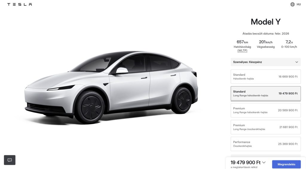Új modellváltozat jelent meg ma reggelre a Tesla európai webshopjában, ami minden korábbinál nagyobb hatótávval csábít és még olcsóbb is, mint az eddigi nagyakkus verzió. Azt nem állítjuk, hogy mindent értünk, de az adatokat meg tudjuk mutatni. Messzire visz a fapados A mai reggelre a Tesla bővítette a tavaly októberben bemutatott Standard felszereltségű szériáját az európai piacon, így nálunk is. A Model Y Standard Long Range a már ismert csökkentett felszereltségi listát hozza, így csak fekete, fehér és szürke fényezésből lehet választani, a belső kárpit csak sötét lehet, meg kell barátkozni a KGST autókról ismert lemezfelnivel és a panoráma tető, illetve a mátrix LED fényszórók mellett az ülésszellőztetés sincs benne az autóban. Magyarországon is megjelent az olcsó Tesla Cserébe viszont az eddigi legnagyobb hatótávú változatot kapjuk, amely a Prémium Long Range verziónál is messzebb jut. A prémium LR modellhez képest ugyanis egymillió forinttal olcsóbban 657 kilométeres WLTP hatótávot kapunk, ami +35 km. Mindent mi sem értünk Tegnap volt egy hírünk az európai típusengedélyek kapcsán, ami egy új, 74 kWh-s akkuopcióról szólt, így elsőre arra gondoltunk, ez került az autó alá, de valahogy nem működik a matek. A Standard Long Range az eddigi legkönnyebb Model Y, saját tömege mindössze 1878 kg, ami egy kisebb NMC akkura utal. Ez az érték 28 kilóval kevesebb a kisakkus modellnél, amely LFP cellákkal készül, de a Prémium hátsókerekes, nagyakkushoz képest is 23 kg fogyókúrát jelent. A gond csak az, hogy a 23 kiló valahogy nem reális a 10 százalékos akkukapacitás-csökkenéshez, annál többet kellett volna leadnia kocsinak a tömegéből, ha több mint 440 darab 2170-es cellát kivesznek a gyomrából. Az sem igazán tűnik logikusnak, hogy pusztán a 18 colos kerékméret és pár, az első lökhárítót érintő aero változtatás annyit jelentene, hogy a tegnap kiszivárgott 74 kWh-s kapacitás ellenére még nőtt is a hatótáv. Vagy csak a WLTP szabvány tesztciklusa dolgozik a józan ész ellen, vagy ez mégis a szokásos nagyobbik akkucsomag és a kis különbség a tömegben csak az extrafelszereltség elhagyásának számlájára írandó. Meglepődnénk, ha érdemi választ kapnánk, de megpróbálunk rákérdezni a Teslánál, mekkora az akkupakk kapacitása. Most már tényleg kíváncsiak vagyunk egy hatótáv tesztre. Érkezik a Mid-Range Model Y Európába? PGEgaHJlZj0iaHR0cHM6Ly93d3cudm9sdGllLmV1Lz91dG1fc291cmNlPXZpbGxhbnlhdXRvc29rJnV0bV9tZWRpdW09ZWxla3Ryb21vc2F1dG8mdXRtX2NhbXBhaWduPXJvdmF0IiBvbmNsaWNrPSJqYXZhc2NyaXB0OndpbmRvdy5vcGVuKCdodHRwczovL3d3dy52b2x0aWUuZXUvP3V0bV9zb3VyY2U9dmlsbGFueWF1dG9zb2smdXRtX21lZGl1bT1lbGVrdHJvbW9zYXV0byZ1dG1fY2FtcGFpZ249cm92YXQnLCAnX2JsYW5rJywgJ25vb3BlbmVyJyk7IHJldHVybiBmYWxzZTsiPjxwaWN0dXJlPjxzb3VyY2Ugc3Jjc2V0PSJodHRwczovL3ZpbGxhbnlhdXRvc29rLmh1L3dwLWNvbnRlbnQvdXBsb2Fkcy8yMDI1LzAyL3ZvbHRpZS1lbGV0cm9tb3MtYXV0by1iYW5uZXItMjAyNS0wOS0wNC12YS1zemVwdC0xMzAweDYwMC1rb3ZpLTEuanBnIiBtZWRpYT0iKG1pbi13aWR0aDogNzAwcHgpIj48aW1nIHNyYz0iaHR0cHM6Ly92aWxsYW55YXV0b3Nvay5odS93cC1jb250ZW50L3VwbG9hZHMvMjAyNS8wMi92b2x0aWUtZWxldHJvbW9zLWF1dG8tYmFubmVyLTIwMjUtMDktMDQtdmEtc3plcHQtMTMwMHg2MDAta292aS0xLmpwZyIgYWx0PSIiPjwvcGljdHVyZT48L2E+ Biró BalázsA fenntartható közlekedés elkötelezett híve, akit elsősorban a Tesla céltudatos és piacot felforgató tevékenysége rántott magával ebbe a világba, így publikációi elsősorban erre a területre koncentrálnak. Google hírek iratkozz fel! Heti hírlevél iratkozz fel! Kővédő fólia védd az autód!