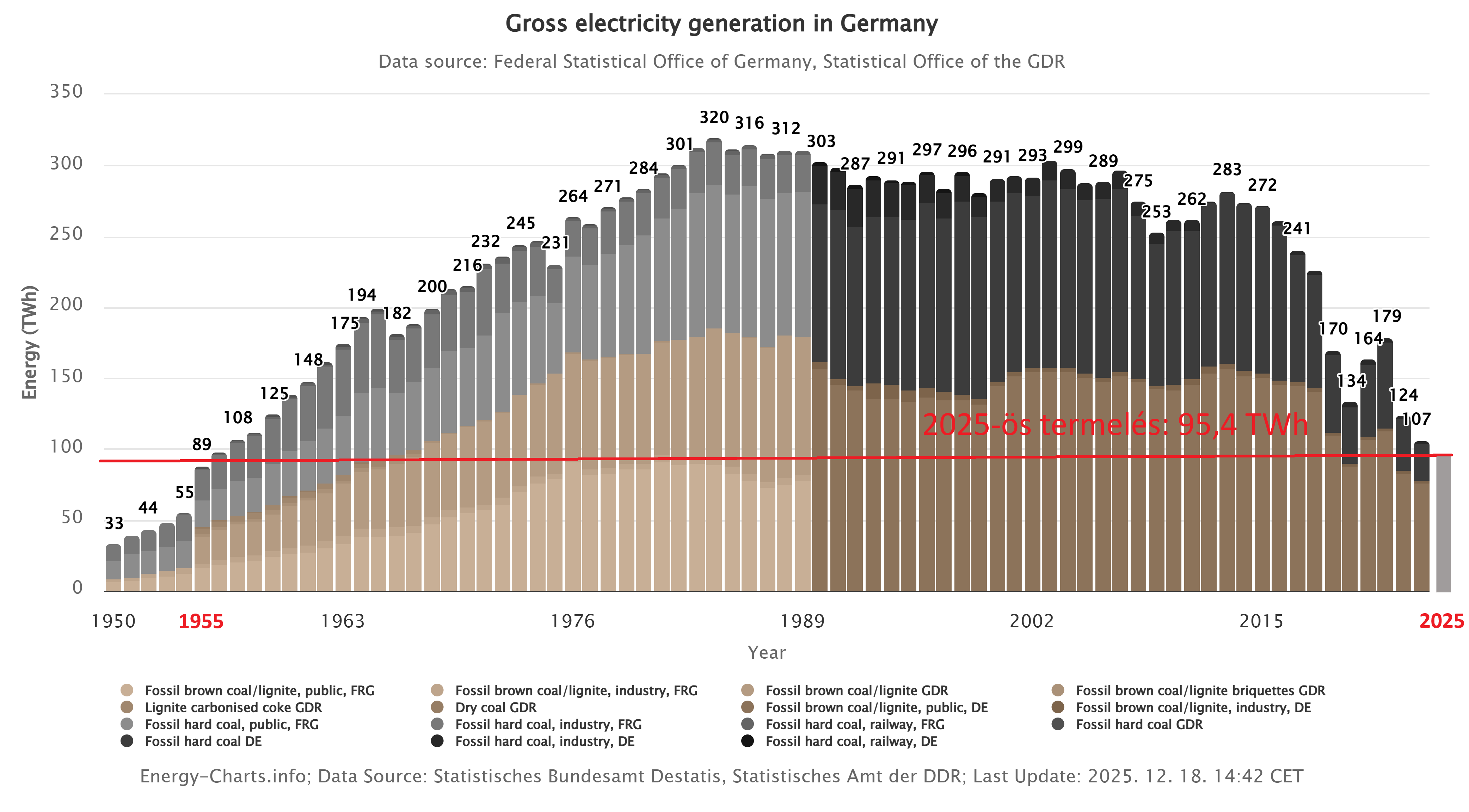Lassan itt az ideje megszabadulni attól a sztereotípiától, amely szerint Németországban szénből állítják elő az áramot. Azt azért persze ma még nem mondhatjuk, hogy az utolsó szénerőmű is lehúzta volna a rolót – ez Magyarországon sem történt még meg –, arról az örvendetes fejleményről azonban be tudunk számolni a Fraunhofer Intézet friss jelentésének köszönhetően, hogy 2025-ben a napenergia Németországban a nettó villamosenergia-termelés második legnagyobb forrásává lépett elő, és több áramot biztosított a felhasználók számára, mint a lignites erőművek. A jelentés alapjául szolgáló adatok – amelyek az energy-charts.info oldalon interaktív grafikonok formájában is elérhetőek – azt mutatják, hogy tavaly év végére az országban működő napelemek névleges összteljesítmény 116,8 GW-ot ért el, ami 16,2 gigawattos növekedést jelent az előző évhez képest. A kisebb-nagyobb naperőművek 2025 folyamán körülbelül 87 TWh villamos energiát állítottak elő, ebből 71 TWh került a közcélú hálózatba, 16,9 TWh pedig saját felhasználásra. A napenergia-termelés összesen körülbelül 15 TWh-val, azaz 21 százalékkal nőtt 2024-hez képest, amiben az új telepítések mellett a napsütéses órák magasabb száma is döntő szerepet játszott. Ennek a növekedésnek köszönhetően a napenergia a történelem során első alkalommal előzte meg a nettó villamosenergia-termelésben a lignites erőműveket. A szélenergia azonban továbbra is a legnagyobb termelési forrás, és még mindig megelőzi a napenergiát, pedig ez nem volt jó év a szélerőművek szempontjából. A szárazföldi szélfarmok termelése az időjárás miatt 3,2 százalékkal alacsonyabb volt, mint 2024-ben. A tengeri szélfarmok körülbelül 26,1 TWh áramot termeltek. A helyzeten az sem igazán javított, hogy a törvényben rögzített bővítési célok tekintetében a szélenergia még mindig lemaradásban van. A tervezett 76,5 GW helyett 2025 végén csak 68,1 GW volt telepítve. A napenergia ezzel szemben a tervnek megfelelően halad, amely azonban azt is előírja, hogy a bővítésnek évi 22 GW-ra kell emelkednie, hogy 2030-ig elérjék a 215 GW-os célt. Az Energy-Charts megállapítása szerint a közcélú hálózatba betáplált megújuló energia összesített aránya 55,9 százalék volt. A fosszilis tüzelőanyaggal működő erőművek esetében a kutatók a lignitről a földgázra történő átállást regisztráltak. Bár a kőszenes erőművek termelése kissé emelkedett, a lignites erőműveké ennél nagyobb mértékben esett, a szén felhasználása így összességében 95,4 terawattórára csökkent, ami történelmi mélypontot jelent – ennél kisebb értéket utoljára 1955-ben láthattunk. A széntüzelésű erőművek CO2-kibocsátása is tovább csökkent, azonban a kibocsátás összességében körülbelül a 2024-es szinten maradt. Az Energy-Charts szinte egész Európából gyűjti az adatokat, amelyek azt mutatják, hogy nem csak Németországban van jelentős előretörés a napenergia területén: tavaly az EU-ban a 275 TWh-s napelemes termelés meghaladta a szenes villamosenergia-termelést, amely 243 TWh volt. Ezzel az Unióban az elmúlt tíz évben a napelemes áramtermelés megháromszorozódott, míg a szénalapú villamosenergia-termelés 60 százalékkal csökkent. dr. Papp László (Sol Invictus)Technológiai elemző, és a Villanyautosok.hu csapatának megújuló energiákkal, energiatárolással, illetve piaci trendekkel foglalkozó szakértője. Célja, hogy minél többek számára tegye egyértelművé, hogy a fenntartható jövő gazdaságilag is a legracionálisabb választás. Google hírek iratkozz fel! Heti hírlevél iratkozz fel! Kővédő fólia védd az autód!