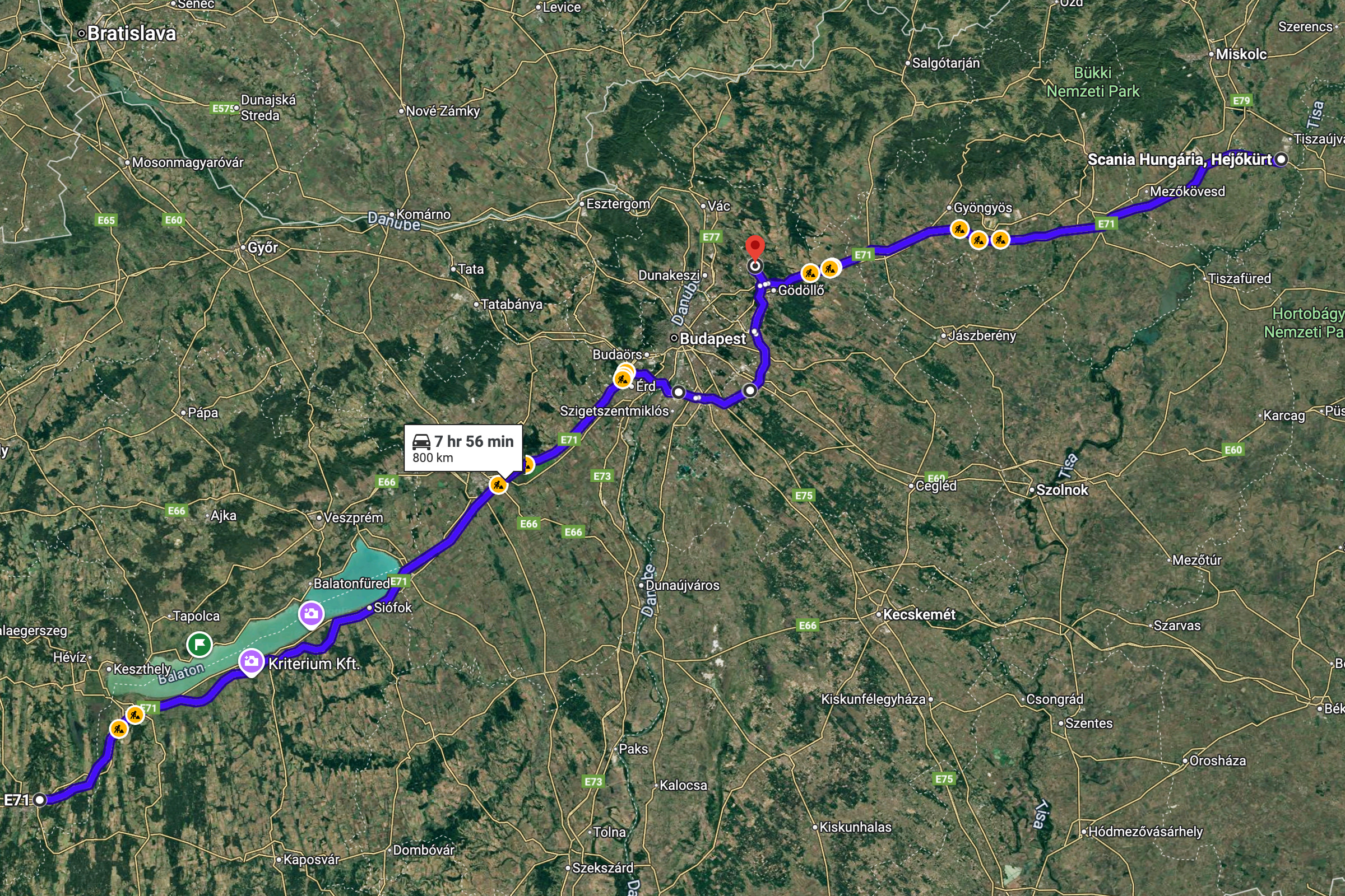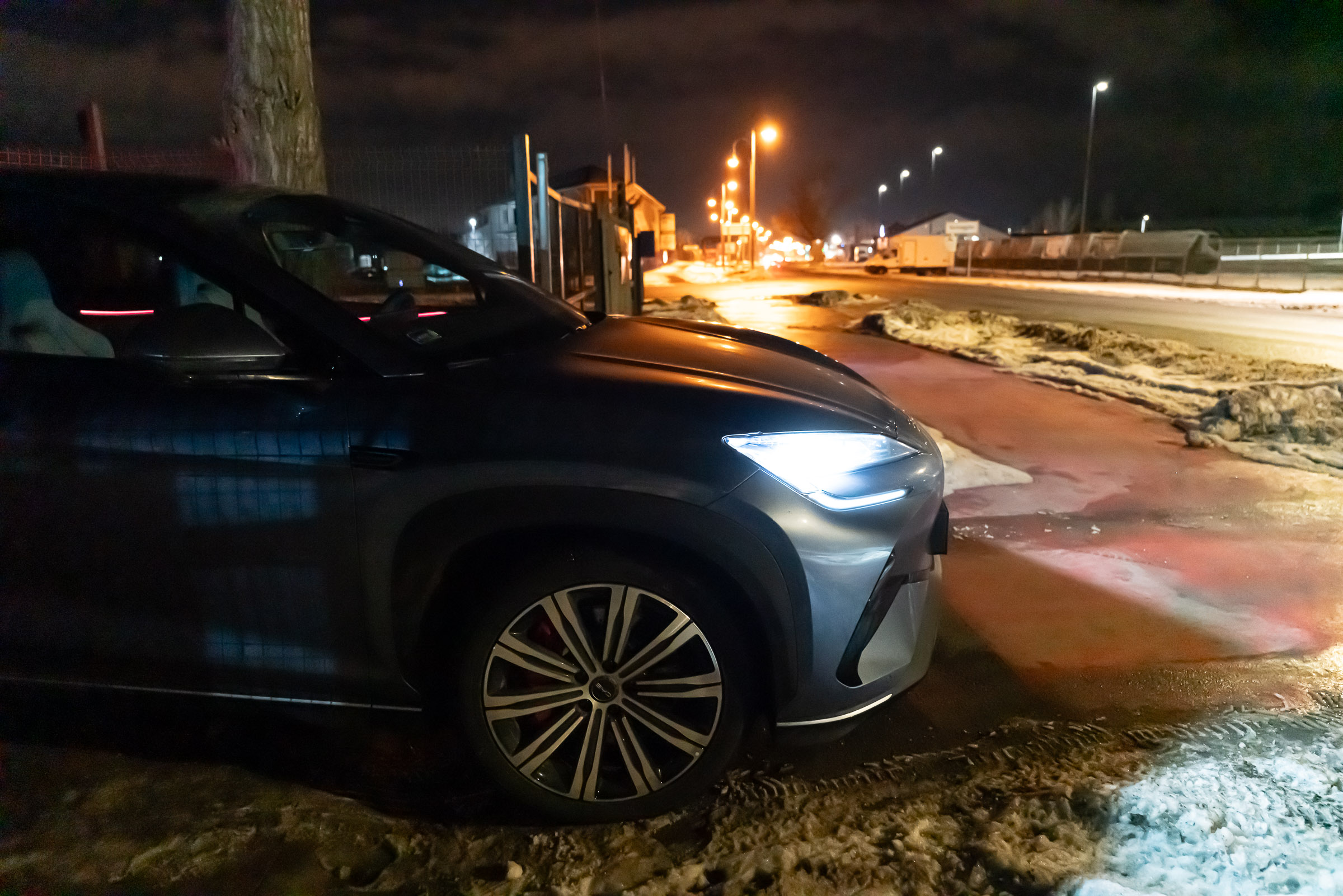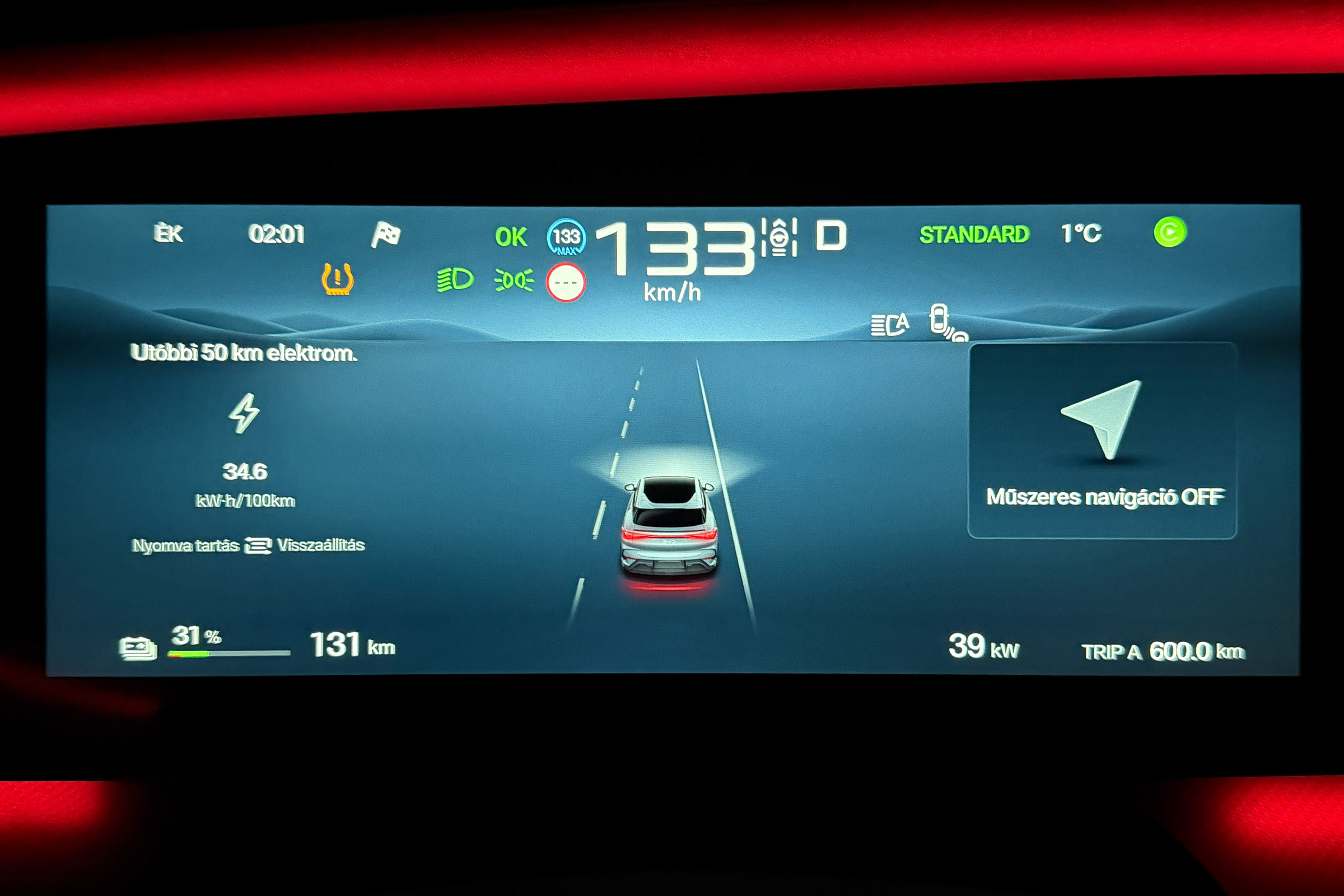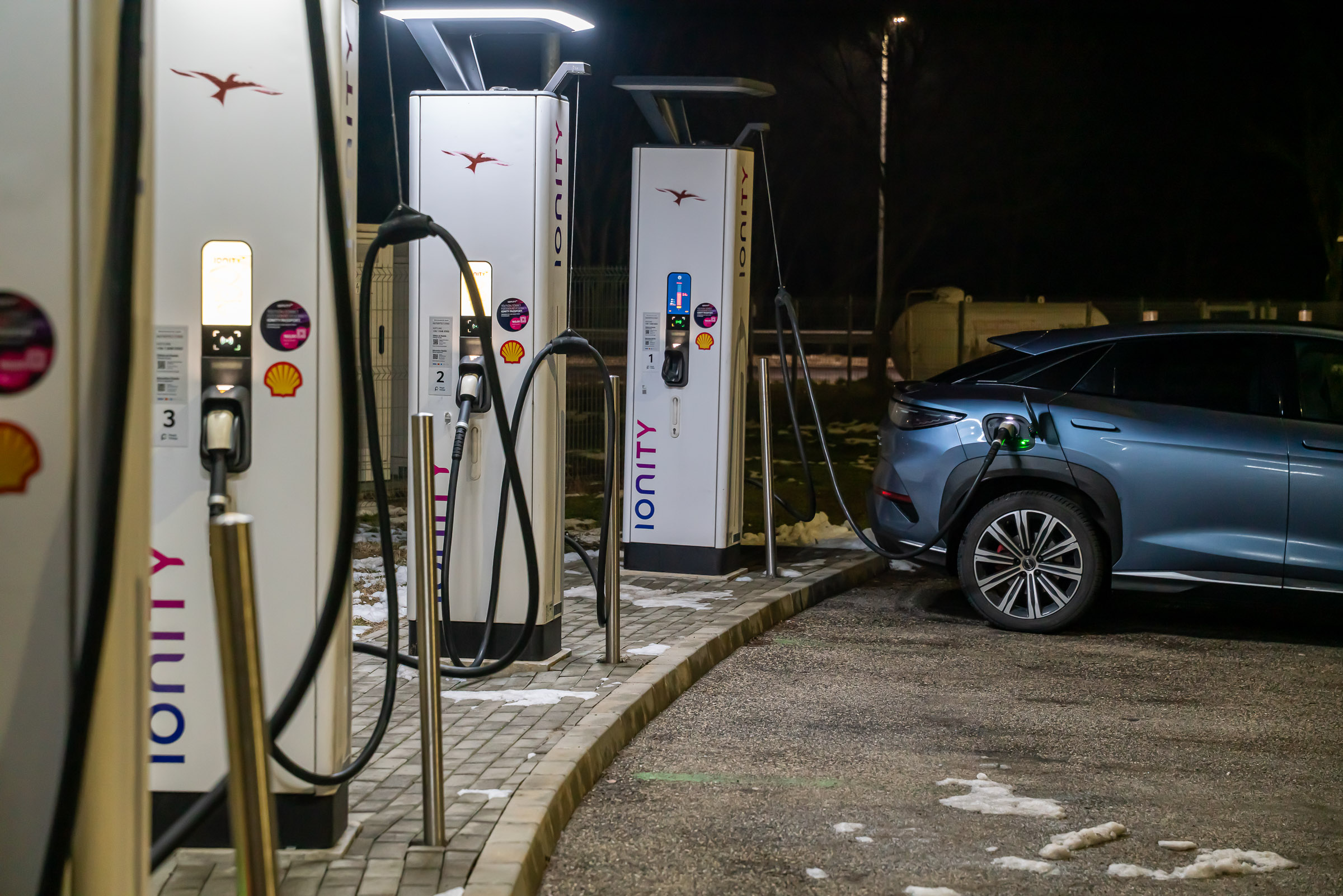A részletes tesztjeink elmaradhatatlan része a töltésteszt. 10% alá merült autóval, az akkut jól előkészítve elmegyünk egy 300 vagy 400 kW-os E.ON Drive Infrastructure töltőhöz, ahol teletöltjük az autót, hogy legyen egy olyan görbénk, amin látszik, hogy milyen töltöttségnél milyen teljesítménnyel képes tölteni az autó. A BYD Sealion 7 Excellence is megkapta a lehetőséget, de valahogy csak nem akart összejönni a gyártó által megadott 235 kW-os töltési teljesítmény. Annyira nem, hogy 115 kW-nál magasabb értéket nem is láttam a kijelzőn. Szinte biztos, hogy a fagypont alatti éjszakai hőmérséklet lehetett az oka, amit követően a töltőhöz vezető több mint félórás út sem volt elég arra, hogy az akku megfelelő hőmérsékletűre melegedjen. Ahhoz, hogy újra nekifussak a tesztnek, le kell meríteni az akkut, de 91 kWh energia esetén ehhez azért sokat kell autózni. Feleslegesen nem akartam, ezért „elmentem” vele inkább az Adriára. De mi ez az Adria szimuláció? Tudom mi ez, átugornám Magyarországról sokan járnak nyaranta Horvátországba pihenni. Budapesttől Split nagyjából 800 km-re található, amit vehetünk egy átlagos távnak. Aki a horvát tengerpart északi részét célozza meg az kevesebbet, aki a déli szakaszra megy, az többet utazik egy picit. Mi ezt a Budapest-Split távot szimuláljuk egy magyarországi körön. Már többször, több autóval megtettük ezt az utat (linkek a cikk végén), azonban az eredetihez képest néhányszor módosítottunk az útvonalon. Ezúttal Veresegyházról indultam kelet felé az M3-as autópályán, majd az oszlári lehajtónál fordultam vissza, Budapest felé, amit az M0-n kerültem meg (visszafele is), az M7-esen az első nagykanizsai lehajtónál fordultam. Így a teljes út töltések nélkül a Google Maps szerint pont 800 km. Pontosan ugyanaz az útvonal, mint legutóbb Mercedes CLA vs Tesla Model 3 összehasonlításnál. Adja magát a kérdés, hogy miért nem megyünk le valóban Splitig az autóval, mégis csak az lenne az igazán hiteles. Ez kétségtelenül így van, de akkor nemcsak odafelé, hanem a visszaútra is rá kellene szánni azt a 8 órát, a töltések árát és az autópálya díjakat. Sokkal praktikusabb, ha olyan útvonalon tesztelünk, aminek a vége a kiindulási pontban van. 20:01 – Indulás Veresegyházról Este 7-kor akartam indulni, hogy a forgalom már ne akadályozzon, de hajnali 3 körül hazaérjek. Az akkuból a 100%-os töltöttséghez hiányzó kWh-kat az otthoni Voltie töltőn terveztem beletolni, de csak induláskor vettem észre, hogy a töltés áll. Az autóhoz nem volt applikációs hozzáférésem, a Voltie üzenetét (ha küldött) nem láttam. Így 7 után néhány perccel nem az Adriára, hanem a közeli TEA DC töltőhöz mentem, ahonnan 8 óra után végül 98%-ös töltöttséggel (448 km jósolt hatótáv) indulhattam. A BYD navigációja sajnos nem teszi lehetővé, hogy az útvonal mentén egynél több közbülső pontot is hozzáadjunk vagy ezek sorrendjét szerkesszük, így a teljes útvonalra nem tudtam vele se menetidőt se töltéseket tervezni úgy, ahogy azt a Teslákkal vagy a Mercedes CLA-val legutóbb tettük. A töltőkkel egyébként tud tervezni az autó, de ilyenkor télen irreálisan alacsony fogyasztással számol, arra nem igazán lehet hagyatkozni. Az oszlári fordulóponthoz például úgy számolt, hogy ott még 64 százalékon lesz az akku töltöttsége. A valóságban azonban már az első 131 km-en elfogyott az akkuból 50 százaléknyi energia, Oszlárnál pedig már csak 44 százalék volt az akkuban. Hamar egyértelművé vált, hogy az első megállót nem Szigetszentmiklósra, hanem a geleji Ionity állomásra kell tervezzem. Miért Ionity? Ma ezen az útvonalon többféle szolgáltató töltőin is tölthetnénk, de több oka is van, hogy általában az Ionity-t használjuk. A legfontosabb, hogy minden töltőjük az autópályához közel található, nagyon kevés időt veszítünk a töltő megközelítésével és a pályára való visszahajtással. Minden helyszínen van éjjel is mosdó és mindegyik állomásuk legalább 350 kW-os. Ráadásul egy előfizetéssel relatíve megfizethető áron tudunk tölteni. A BYD Sealion 7 egy 800 voltos (igazából inkább 600 volt, a lényeg, hogy 500 voltnál magasabb a feszültség) rendszerű autó, ami papíron 235 kW-tal képes tölteni, így mindenképpen legalább 300 kW-os töltőket kell célba vennem, ha nem szeretném, hogy az infrastruktúra hátráltasson a haladásban. 21:24 – Gelej észak, Ionity (163 km, 1 óra 23 perc) Szokatlanul rövid lett az első etap. Mehettem volna még 20-25 percet, de sajnos még nem ennyire sűrű az Ionity hálózat ezen az útszakaszon. Ráadásul értelme sem sok lett volna, mert mint kiderült, az akku az előmelegítés kézi bekapcsolása ellenére sem volt elég meleg ahhoz, hogy a -4 °C-os külső hőmérséklet mellett a Sealion 7 154 kW-nál nagyobb teljesítménnyel töltsön. Töltöttség érkezéskor Állás ideje Töltés ideje Betöltött energia Töltési teljesítmény Töltöttség induláskor 36% 13 perc 11 perc 27 kWh 147,3 kW 65% Ennek ellenére elég volt 11 perc, hogy 36-ról 65 százalékra töltsem az akkut. Úgy számoltam, hogy ha 34 kWh-t fogyaszt 100 kilométerenként az autó, akkor a következő 163 km-re 55,4 kWh energia, vagyis 61%-os töltöttségre lesz szükségem. Hogy ne nulla százalékkal essek be a töltőhöz, inkább 65 százalékig töltöttem, de azt is tudtam, hogy az M0-n a 110 km-es sebességkorlátozás miatt alacsonyabb lesz a fogyasztás, tehát valahol 5 és 10 százalék közötti érkezésre számítottam. A navigáció már 53 százalékos töltöttségnél is 22 százalékos érkezéskori szintet jósolt Szigetszentmiklósra. Nem szabad hinni neki. Egyébként furcsa, de töltés közben csak a százalékos töltöttséget írja