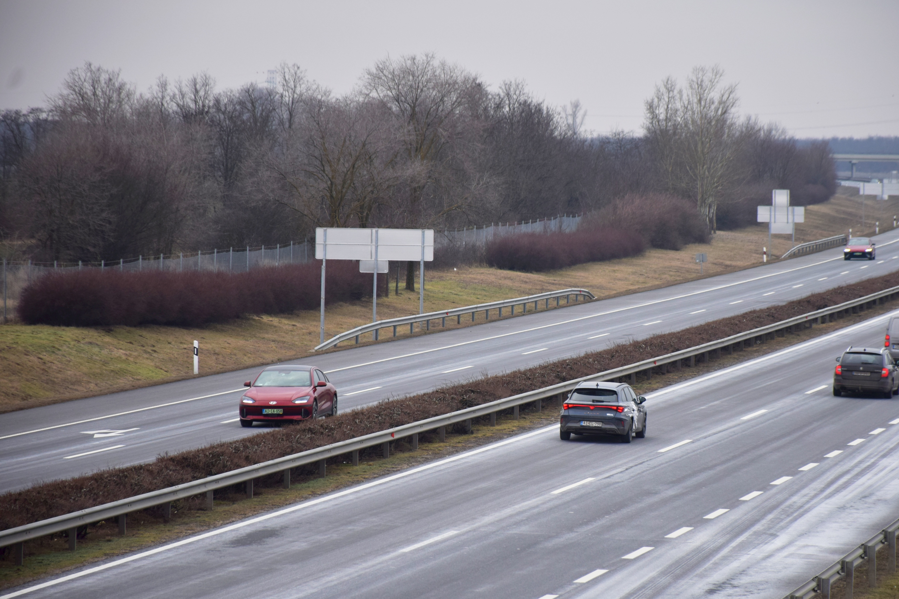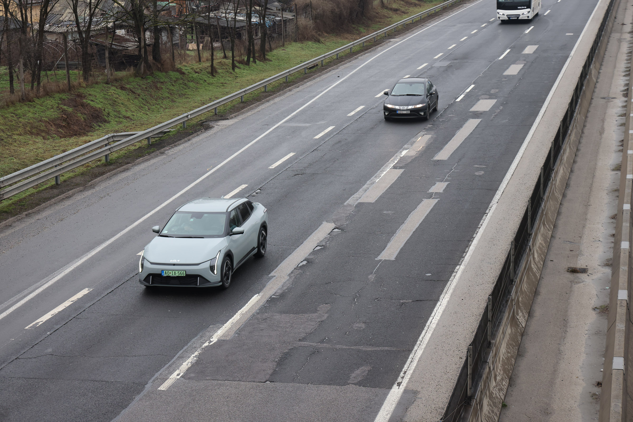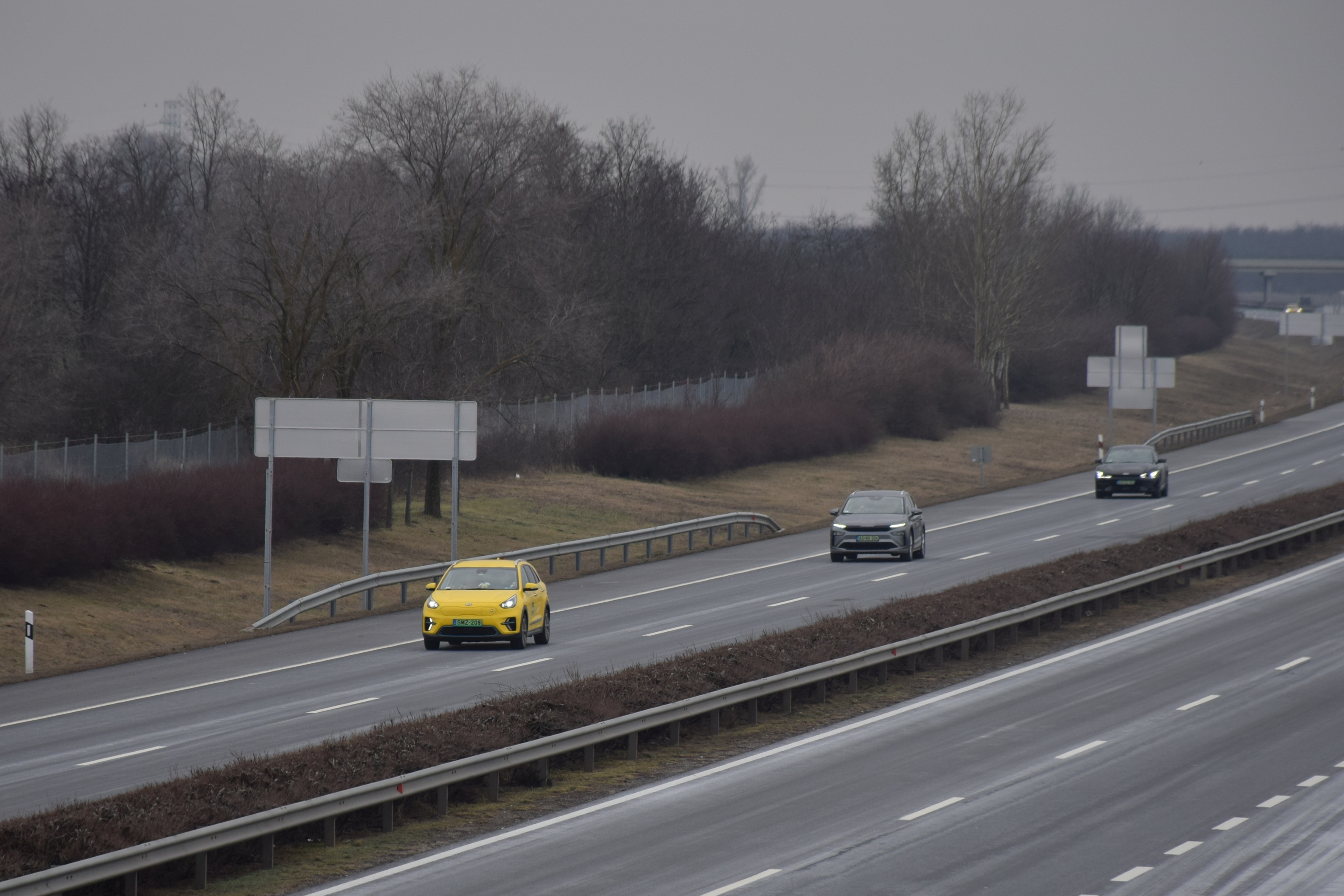 PGEgaHJlZj0iaHR0cHM6Ly92aWxsYW55YXV0b3Nvay5odS9yb3ZpZGVuLzIxMDM4MF83NWRiYTA5ZWUzIiBvbmNsaWNrPSJqYXZhc2NyaXB0OndpbmRvdy5vcGVuKCdodHRwczovL3ZpbGxhbnlhdXRvc29rLmh1L3JvdmlkZW4vMjEwMzgwXzc1ZGJhMDllZTMnLCAnX2JsYW5rJywgJ25vb3BlbmVyJyk7IHJldHVybiBmYWxzZTsiPjxwaWN0dXJlPjxzb3VyY2Ugc3Jjc2V0PSJodHRwczovL3ZpbGxhbnlhdXRvc29rLmh1L3dwLWNvbnRlbnQvdXBsb2Fkcy8yMDI2LzAyL3Z3LWZhc3RzdGFydC1pZC02MDB4NTAwLTEuanBnIiBtZWRpYT0iKG1heC13aWR0aDogNzAwcHgpIj48c291cmNlIHNyY3NldD0iaHR0cHM6Ly92aWxsYW55YXV0b3Nvay5odS93cC1jb250ZW50L3VwbG9hZHMvMjAyNi8wMi92dy1mYXN0c3RhcnQtaWQtMTMwMHg2MDAtMS5qcGciIG1lZGlhPSIobWluLXdpZHRoOiA3MDBweCkiPjxpbWcgc3JjPSJodHRwczovL3ZpbGxhbnlhdXRvc29rLmh1L3dwLWNvbnRlbnQvdXBsb2Fkcy8yMDI2LzAyL3Z3LWZhc3RzdGFydC1pZC0xMzAweDYwMC0xLmpwZyIgYWx0PSIiPjwvcGljdHVyZT48L2E+ Élőben közvetítjük, hogyan merül le 31 tisztán elektromos autó, melyek között nem csak újdonságok, de idősebb, akár többszázezer kilométert futott használt autók is megtalálhatók. A mai nap (2026. február 1) során ez a cikk folyamatosan frissülni fog, így érdemes időről-időre visszanézni, merre járnak, meddig jutottak a legnagyobb hatótávú modellek. A Magyar Elektromobilitás Egyesület (ELMOB) megírigyelte a norvégok által évente kétszer megrendezett hatótávtesztet, és úgy döntöttek Magyarországon is megállásig merítenek „néhány” elektromos autót. Az eseményt a Magyar Elektromobilitás Egyesület szervezte, a lebonyolításban közreműködik a JP Autó, a Green Assistance, a Mobiliti és a Fóti Közhasznú Polgárőr Egyesület. A mezőny Az eseményen résztvevő járművek (abc sorrendben) a következők: Típus Akku kapacitás bruttó/nettó [kWh] Évjárat Futott kilométer [km] WLTP hatótáv [km] BYD ATTO 2 Comfort 64,8 2025 1800 430 BYD Sealion 7 RWD 84/82,5 2025 1600 482 Citroën eC3 You 44/43 2024 15.000 322 Cupra Tavascan Endurance Limited 82/77 569 Ford Capri Extended Range RWD 82/77 598 Hyundai Inster SR 42/39 2025 600 327 Hyundai Ioniq 5 FL 84/80 570 Hyundai Ioniq 6 77,4/74 2024 24.000 614 Hyundai Ioniq 6 FL 84/80 650 Hyundai Ioniq Electric 28 kWh 30,5/28 2017 182.000 200 Hyundai Ioniq Electric 38 kWh 40,4/38,3 2019 113.000 311 Hyundai Kona 40,4/38,3 Jaeco 5 EV Exclusive 60,9/58,9 402 KGM Torres EVX 75/73,4 2024 24.000 462 KIA e-Niro 67,5/64 2020 345.000 455 KIA EV4 81,4/78 623 KIA EV6 84/80 582 KIA EV6 RWD e228 GT-Line 77,4/74 2021 96.000 528 Mercedes-Benz CLA 250+ 90/85 792 Mercedes-Benz EQS 450+ 120/107,8 2022 62.000 770 MG ZS EV FL 51,1/49 2022 63.000 320 Omoda 5 EV Premium 61/60 417 Renault Zoe R135 55/52 2020 143.000 386 Škoda Citigo e-iV 36,8/32,3 2020 134.000 257 Škoda Enyaq 85 RWD 82/77 2025 1300 572 Suzuki eVitara 61,1/59,8 426 Tesla Model 3 LR AWD 75/72 2020 130.000 580 Tesla Model S 90D 90/85,5 2016 194.000 455 Tesla Model Y Juniper RWD 62,5/60 2025 14.000 500 Tesla Model Y Standard 62,5/60 534 Volkswagen ID.7 Pro 82/77 598 10:20 RAJT! Elrajtolt a mezőny Fótról, a JP Autó telephelyéről. Az időjárásra nem lehet panasz: 0 fok körüli hőmérséklet és enyhe havazás. A környékbeli töltőkön indulás előtt minden autót teletöltöttek. A Fóti Polgárőr Egyesület biztosításának köszönhetően a konvoj nem szakadt szét az autópálya felhajtóig, zavartalunul haladhattak át a környékbeli körforgalmakon. A sor elején a legkisebb hatótávú, várhatóan legelőször visszaforduló autók haladnak, az utolsó néhány autó pedig reményeink szerint egészen Miskolcig eljut, mielőtt 50%-os töltöttséggel visszafordul. A 40 kWh-nál kisebb akku kapacitással rendelkező autók az 55%-os töltöttségi szint elérését követően hajtanak le az első lehetőségnél az autópályáról és fordulnak vissza, még mindig autópályán. A 20%-os szint elérése után elhagyják az autópályát és főúton próbálnak meg visszaérkezni a bázisig. A 40 kWh-nál több energiával gazdálkodó járművek 50% után fordulnak és visszafelé egészen 10%-os töltöttségig az autópályán maradnak. 10:50 Az első forduló Elsőként a 28 kWh-s Hyundai Ioniq electric hagyta el az autópályát, 49 kilométer megtétele után a hatvani lehajtónál. Tíz perccel később, 60 kilométer megtétele után a Skoda Citigo eiV is elhagyta az autópályát, azaz túllépte az 50 százalékos töltöttséget. Harmadikként a Citroën ëC3 hajtott le az autópályáról és fordult meg, Adács környékén, 68 kilométer megtétele után. 11:10 Egyre többen már visszaúton Az 52 kWh-s akkuval gazdálkodó Renault Zoe és a 39 kWh-s Hyundai Kona egyaránt a nagyfügedi lehajtóig jutott, azaz kereken 80 kilométert tettek meg az akkumulátor kapacitásuk felének felhasználásával. 11:15 Az első autó közeleg a bázishoz A 28 kWh-s Hyundai Ioniq Gödöllőnél elhagyta az autópályát, ami azt jelenti, hogy már 20%-nál kevesebb energia volt az akkumulátorában. A visszafelé vezető úton Hévízgyörknél egy terelés lassítja a haladást. A Hyundai Inster és a Jaeco 5, az MG ZSE EV és a 38 kWh-s Hyundai Ioniq egyaránt Kálnál, 98 kilométer megtétele után fordult vissza. 11:30 újabb két autó fordult vissza Mezőkövesdig jutott az Omoda 5 és a BYD ATTO 2, 118 kilométert tettek meg az akku első felével. Mezőkeresztesnél a BYD Sealion 7 is visszafordult, 128 kilométer megtétele után. Fotó: Völgyi Attila 11:40 Az útelágazás után nagyon sokan visszafordultak A mezőny elérte az M3-M30-as elágazást, remélhetőleg a 60-as korlátozást a VÉDA kapunál mindenki betartotta. Fotó: Vascsák Roland Fotó: Vascsák Roland Fotó: Vascsák Roland Az emődi lehajtónál, 145 kilométerrel a rajtot követően visszafordult a Skoda ENYAQ, a Model S90D, a Hyundai Ioniq 5, a Kia EV6 RWD, a Kia e-Niro, és mindkét kisakkus Model Y, ezek szerint a Standard változat kisebb kerekei nem jelentettek komoly előnyt. Az egyik Tesla elvétette az M30-as elágazást, ezért Emőd helyett Igricinél fordult meg, de a forduló után épp
