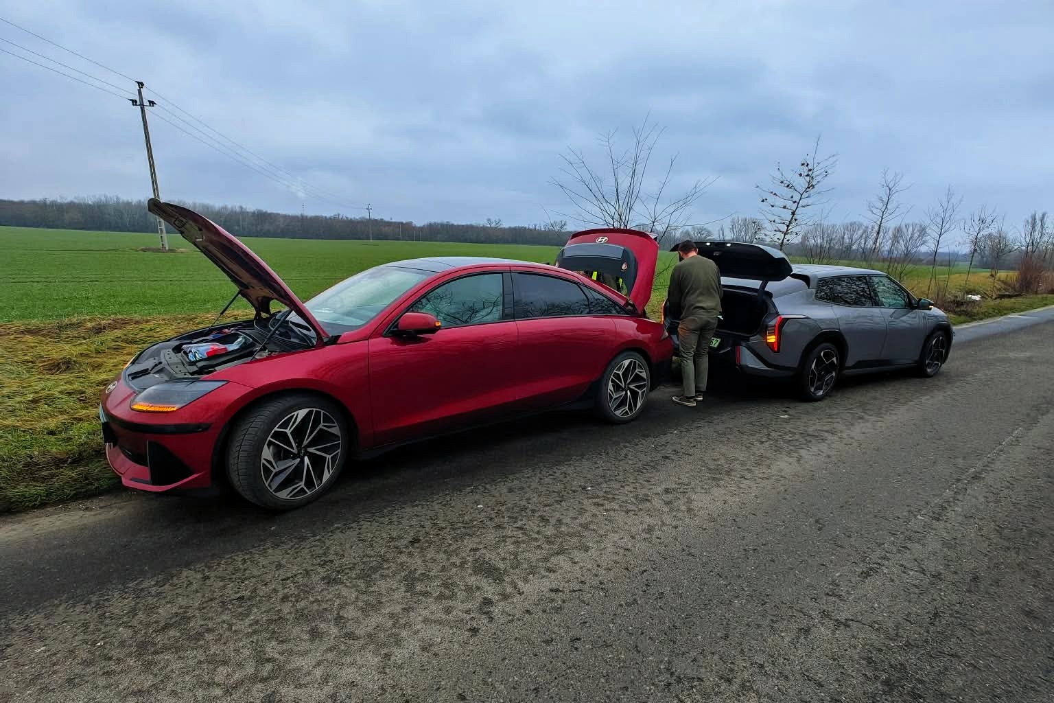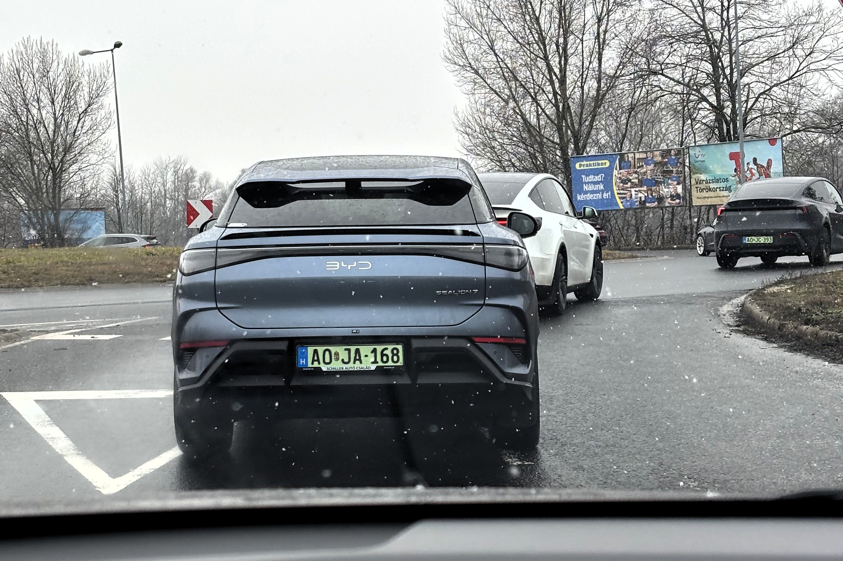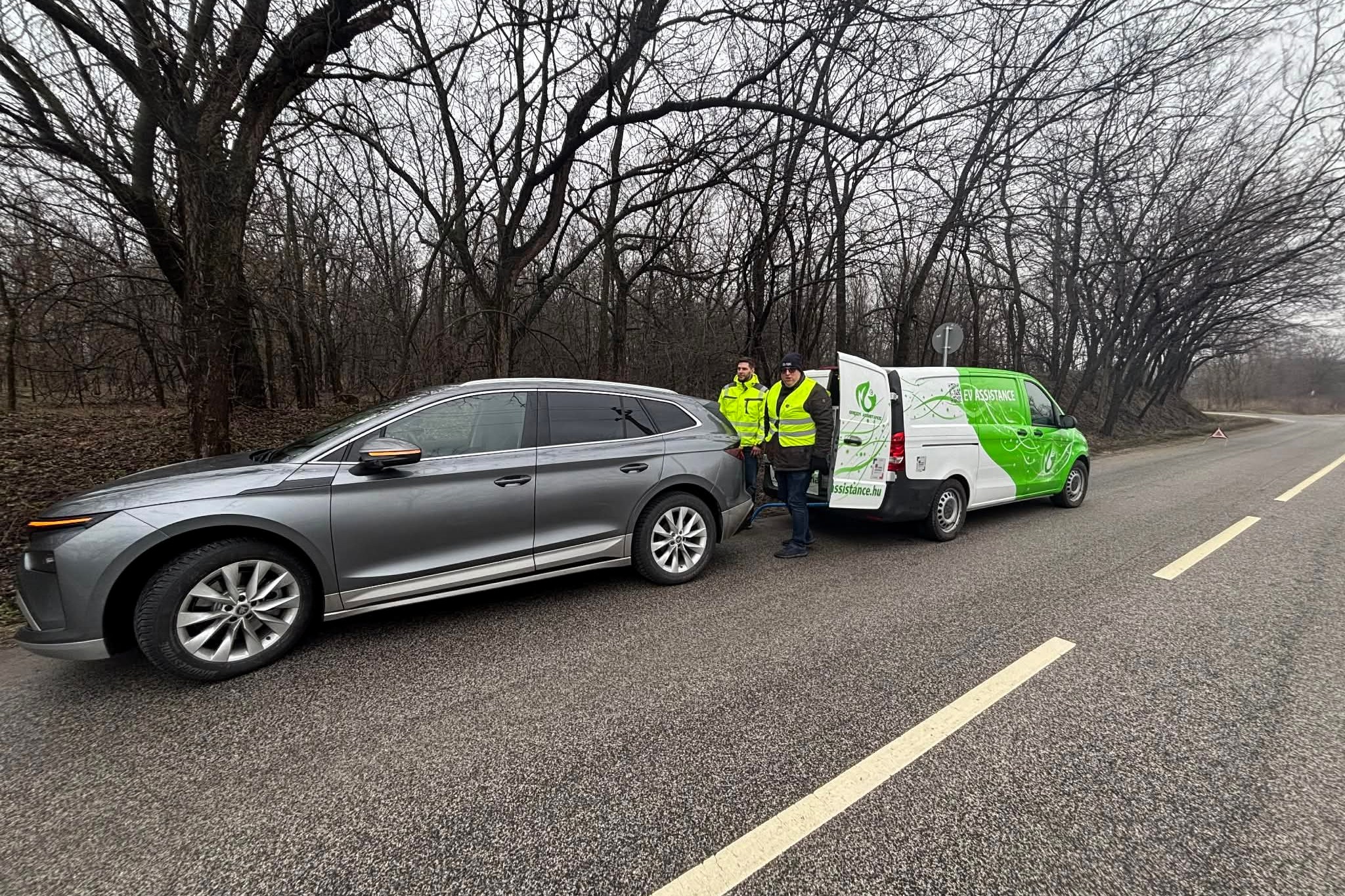 PGEgaHJlZj0iaHR0cHM6Ly92aWxsYW55YXV0b3Nvay5odS9yb3ZpZGVuLzIxMDM4MF83NWRiYTA5ZWUzIiBvbmNsaWNrPSJqYXZhc2NyaXB0OndpbmRvdy5vcGVuKCdodHRwczovL3ZpbGxhbnlhdXRvc29rLmh1L3JvdmlkZW4vMjEwMzgwXzc1ZGJhMDllZTMnLCAnX2JsYW5rJywgJ25vb3BlbmVyJyk7IHJldHVybiBmYWxzZTsiPjxwaWN0dXJlPjxzb3VyY2Ugc3Jjc2V0PSJodHRwczovL3ZpbGxhbnlhdXRvc29rLmh1L3dwLWNvbnRlbnQvdXBsb2Fkcy8yMDI2LzAyL3Z3LWZhc3RzdGFydC1pZC02MDB4NTAwLTEuanBnIiBtZWRpYT0iKG1heC13aWR0aDogNzAwcHgpIj48c291cmNlIHNyY3NldD0iaHR0cHM6Ly92aWxsYW55YXV0b3Nvay5odS93cC1jb250ZW50L3VwbG9hZHMvMjAyNi8wMi92dy1mYXN0c3RhcnQtaWQtMTMwMHg2MDAtMS5qcGciIG1lZGlhPSIobWluLXdpZHRoOiA3MDBweCkiPjxpbWcgc3JjPSJodHRwczovL3ZpbGxhbnlhdXRvc29rLmh1L3dwLWNvbnRlbnQvdXBsb2Fkcy8yMDI2LzAyL3Z3LWZhc3RzdGFydC1pZC0xMzAweDYwMC0xLmpwZyIgYWx0PSIiPjwvcGljdHVyZT48L2E+ Élőben közvetítjük, hogyan merül le 31 tisztán elektromos autó, melyek között nem csak újdonságok, de idősebb, akár többszázezer kilométert futott használt autók is megtalálhatók. A mai nap (2026. február 1) során ez a cikk folyamatosan frissülni fog, így érdemes időről-időre visszanézni, merre járnak, meddig jutottak a legnagyobb hatótávú modellek. A Magyar Elektromobilitás Egyesület (ELMOB) megírigyelte a norvégok által évente kétszer megrendezett hatótávtesztet, és úgy döntöttek Magyarországon is megállásig merítenek „néhány” elektromos autót. Az eseményt a Magyar Elektromobilitás Egyesület szervezte, a lebonyolításban közreműködik a JP Autó, a Green Assistance, a Mobiliti és a Fóti Közhasznú Polgárőr Egyesület. A mezőny Az eseményen résztvevő járművek (abc sorrendben) a következők: Típus Akku kapacitás bruttó/nettó [kWh] Évjárat Futott kilométer [km] WLTP hatótáv [km] BYD ATTO 2 Comfort 64,8 2025 1800 430 BYD Sealion 7 RWD 84/82,5 2025 1600 482 Citroën eC3 You 44/43 2024 15.000 322 Cupra Tavascan Endurance Limited 82/77 569 Ford Capri Extended Range RWD 82/77 598 Hyundai Inster SR 42/39 2025 600 327 Hyundai Ioniq 5 FL 84/80 570 Hyundai Ioniq 6 77,4/74 2024 24.000 614 Hyundai Ioniq 6 FL 84/80 650 Hyundai Ioniq Electric 28 kWh 30,5/28 2017 182.000 200 Hyundai Ioniq Electric 38 kWh 40,4/38,3 2019 113.000 311 Hyundai Kona 40,4/38,3 Jaeco 5 EV Exclusive 60,9/58,9 402 KGM Torres EVX 75/73,4 2024 24.000 462 KIA e-Niro 67,5/64 2020 345.000 455 KIA EV4 81,4/78 623 KIA EV6 84/80 582 KIA EV6 RWD e228 GT-Line 77,4/74 2021 96.000 528 Mercedes-Benz CLA 250+ 90/85 792 Mercedes-Benz EQS 450+ 120/107,8 2022 62.000 770 MG ZS EV FL 51,1/49 2022 63.000 320 Omoda 5 EV Premium 61/60 417 Renault Zoe R135 55/52 2020 143.000 386 Škoda Citigo e-iV 36,8/32,3 2020 134.000 257 Škoda Enyaq 85 RWD 82/77 2025 1300 572 Suzuki eVitara 61,1/59,8 426 Tesla Model 3 LR AWD 75/72 2020 130.000 580 Tesla Model S 90D 90/85,5 2016 194.000 455 Tesla Model Y Juniper RWD 62,5/60 2025 14.000 500 Tesla Model Y Standard 62,5/60 534 Volkswagen ID.7 Pro 82/77 598 10:20 RAJT! Elrajtolt a mezőny Fótról, a JP Autó telephelyéről. Az időjárásra nem lehet panasz: 0 fok körüli hőmérséklet és enyhe havazás. A környékbeli töltőkön indulás előtt minden autót teletöltöttek. A Fóti Polgárőr Egyesület biztosításának köszönhetően a konvoj nem szakadt szét az autópálya felhajtóig, zavartalunul haladhattak át a környékbeli körforgalmakon. A sor elején a legkisebb hatótávú, várhatóan legelőször visszaforduló autók haladnak, az utolsó néhány autó pedig reményeink szerint egészen Miskolcig eljut, mielőtt 50%-os töltöttséggel visszafordul. A 40 kWh-nál kisebb akku kapacitással rendelkező autók az 55%-os töltöttségi szint elérését követően hajtanak le az első lehetőségnél az autópályáról és fordulnak vissza, még mindig autópályán. A 20%-os szint elérése után elhagyják az autópályát és főúton próbálnak meg visszaérkezni a bázisig. A 40 kWh-nál több energiával gazdálkodó járművek 50% után fordulnak és visszafelé egészen 10%-os töltöttségig az autópályán maradnak. 10:50 Az első forduló Elsőként a 28 kWh-s Hyundai Ioniq electric hagyta el az autópályát, 49 kilométer megtétele után a hatvani lehajtónál. Tíz perccel később, 60 kilométer megtétele után a Skoda Citigo eiV is elhagyta az autópályát, azaz túllépte az 50 százalékos töltöttséget. Harmadikként a Citroën ëC3 hajtott le az autópályáról és fordult meg, Adács környékén, 68 kilométer megtétele után. 11:10 Egyre többen már visszaúton Az 52 kWh-s akkuval gazdálkodó Renault Zoe és a 39 kWh-s Hyundai Kona egyaránt a nagyfügedi lehajtóig jutott, azaz kereken 80 kilométert tettek meg az akkumulátor kapacitásuk felének felhasználásával. 11:15 Az első autó közeleg a bázishoz A 28 kWh-s Hyundai Ioniq Gödöllőnél elhagyta az autópályát, ami azt jelenti, hogy már 20%-nál kevesebb energia volt az akkumulátorában. A visszafelé vezető úton Hévízgyörknél egy terelés lassítja a haladást. A Hyundai Inster és a Jaeco 5, az MG ZSE EV és a 38 kWh-s Hyundai Ioniq egyaránt Kálnál, 98 kilométer megtétele után fordult vissza. 11:30 újabb két autó fordult vissza Mezőkövesdig jutott az Omoda 5 és a BYD ATTO 2, 118 kilométert tettek meg az akku első felével. Mezőkeresztesnél a BYD Sealion 7 is visszafordult, 128 kilométer megtétele után. Fotó: Völgyi Attila 11:40 Az útelágazás után nagyon sokan visszafordultak A mezőny elérte az M3-M30-as elágazást, remélhetőleg a 60-as korlátozást a VÉDA kapunál mindenki betartotta. Fotó: Vascsák Roland Fotó: Vascsák Roland Fotó: Vascsák Roland Az emődi lehajtónál, 145 kilométerrel a rajtot követően visszafordult a Skoda ENYAQ, a Model S90D, a Hyundai Ioniq 5, a Kia EV6 RWD, a Kia e-Niro, és mindkét kisakkus Model Y, ezek szerint a Standard változat kisebb kerekei nem jelentettek komoly előnyt. Az egyik Tesla elvétette az M30-as elágazást, ezért Emőd helyett Igricinél fordult meg, de a forduló után épp