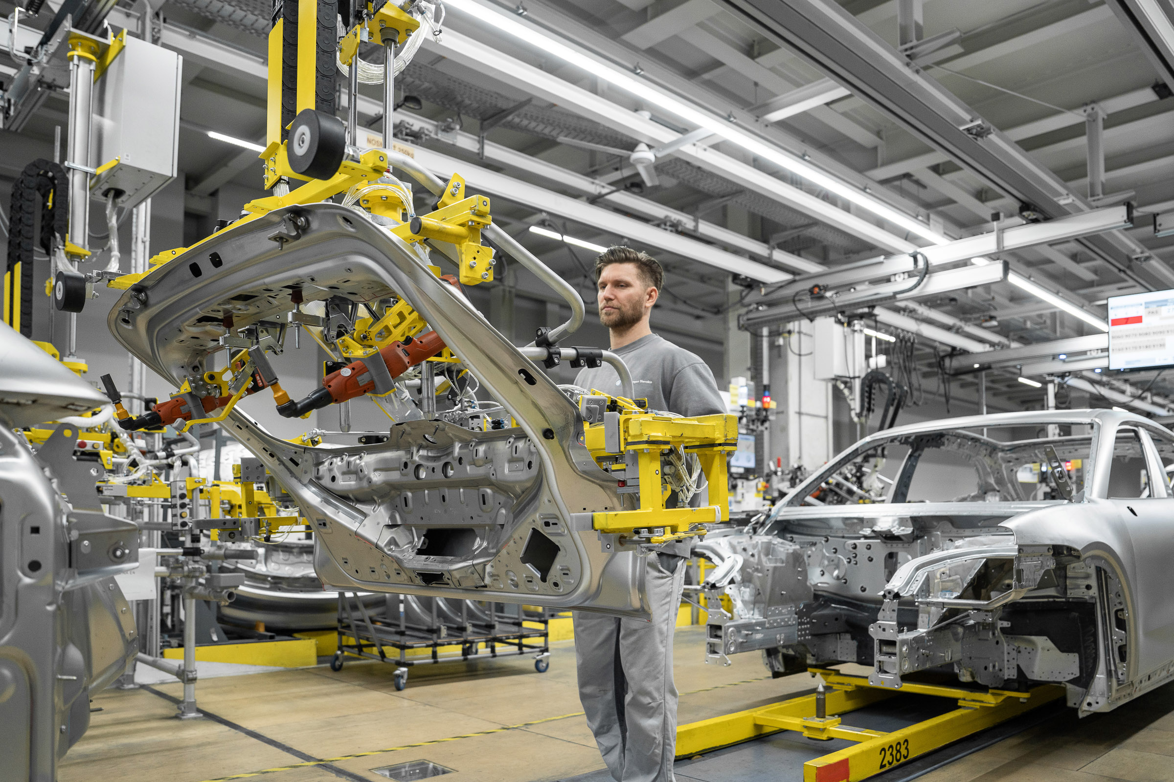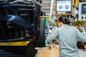 PGEgaHJlZj0iaHR0cHM6Ly92aWxsYW55YXV0b3Nvay5odS9yb3ZpZGVuLzIxMDM4MF83NWRiYTA5ZWUzIiBvbmNsaWNrPSJqYXZhc2NyaXB0OndpbmRvdy5vcGVuKCdodHRwczovL3ZpbGxhbnlhdXRvc29rLmh1L3JvdmlkZW4vMjEwMzgwXzc1ZGJhMDllZTMnLCAnX2JsYW5rJywgJ25vb3BlbmVyJyk7IHJldHVybiBmYWxzZTsiPjxwaWN0dXJlPjxzb3VyY2Ugc3Jjc2V0PSJodHRwczovL3ZpbGxhbnlhdXRvc29rLmh1L3dwLWNvbnRlbnQvdXBsb2Fkcy8yMDI2LzAyL3Z3LWZhc3RzdGFydC1pZC02MDB4NTAwLTEuanBnIiBtZWRpYT0iKG1heC13aWR0aDogNzAwcHgpIj48c291cmNlIHNyY3NldD0iaHR0cHM6Ly92aWxsYW55YXV0b3Nvay5odS93cC1jb250ZW50L3VwbG9hZHMvMjAyNi8wMi92dy1mYXN0c3RhcnQtaWQtMTMwMHg2MDAtMS5qcGciIG1lZGlhPSIobWluLXdpZHRoOiA3MDBweCkiPjxpbWcgc3JjPSJodHRwczovL3ZpbGxhbnlhdXRvc29rLmh1L3dwLWNvbnRlbnQvdXBsb2Fkcy8yMDI2LzAyL3Z3LWZhc3RzdGFydC1pZC0xMzAweDYwMC0xLmpwZyIgYWx0PSIiPjwvcGljdHVyZT48L2E+ Az olyan drága és különleges sportautók gyártásához, mint amilyenek a Porschék is, gyakran az a kép társul a fejünkben, hogy azokat rengeteg kézimunkával, majdhogynem manufakturális körülmények között készítik. Biztosan vannak ilyen kis szériás autók, talán még a Porsche kínálatában is, de a legnépszerűbb modellek ma már ugyanúgy futószalagon, a legmodernebb gyártósorokon készülnek, mint bármelyik másik tömeggyártású autó. A napokban a Porsche Cayenne elektromos változatának indult el a gyártása a pozsonyi Volkswagen gyárban, ahol egy sajtóesemény kapcsán ki is próbálhattuk a Porsche valaha készült legerősebb szériaautóját, az 1156 lóerős Cayenne Turbo electricet. Sajnos a helyszínen fotózni ezúttal sem fotózhattunk, így a leírtak illusztrálásához a Porsche sajtóosztályától kapott fotókat használjuk. Nem tévedés, nem elírás, a Porsche a szomszédunkban, egy Volkswagen gyárban, több más, sokkal hétköznapibb autóval együtt gyártja a prémium SUV modellt. Ráadásul ez így van már egy ideje. A modell teljes gyártása 2017 óta, a harmadik generáció megjelenése óta zajlik ebben az üzemben (korábban a félkész autókat Lipcsébe szállították befejezésre). Az új modell bevezetésének a különlegessége, hogy most ugyanazon a gyártósoron készülnek a belső égésű motoros, a hibrid és a teljesen elektromos változatok is. Wolfsburg után egyébként ez a Volkswagen második legnagyobb gyára Európában, ami 11,5 ezer embernek ad munkát. A gyár a rendszerváltás idején került a Volkswagenhez, de ma már semmi nem utal arra az időszakra. A pozsonyi gyár legalább annyira modern, tiszta és világos, mint bármelyik ma épülő autógyár. Bár azt ránézésre nem könnyű megállapítani, hogy milyen az automatizálás foka egy gyárban, nekem nem tűnt sem aul- sem túlrobotizáltnak. A karosszériaüzemben természetesen túlnyomórészt teljesen automatizált robotok dolgoznak. Fel-felbukkan ugyan néhány ember a sorok között, de a feladatok oroszlánrészét az előre precízen beprogramozott Kuka robotkarok teljesen automatikusan, emberi beavatkozás nélkül elvégzik. Az elektromos Cayenne vázában van ugyan négy kisebb öntvény, de azokat külső beszállító hozza, nem helyben készülnek. Megacasting nincs, így az autó vázát rengeteg kisebb-nagyobb elemből állítják össze, hegesztéssel, ragasztással és csavarozással. A csavarozásnál persze már nem a klasszikus megoldás a divat, ma már előfúrás nélkül hajtják be az FDS (flow drill screw) csavarokat a lemezekbe, ami valószínűleg nagyobb precizitást és stabilitást eredményez. A kész vázat két perc alatt lézerekkel és kamerákkal felvértezett robotok pásztázzák körbe, közben 600 ponton mérve és fotózva az elkészült példányt. Ragasztásnál érdekes volt látni, hogy míg a szélvédők és üvegtetők beragasztásánál általában a fixen felszerelt ragasztópisztoly előtt mozgatják a nagy, nehéz üveget, addig a karosszériaelemeknél a robotkar mozgatja a ragasztót adagoló csövet a fixen álló alkatrész megfelelő pontjához. A teljes karosszériaelemeket már valószínűleg túl nagyok ahhoz, hogy gyorsan, kellő precizitással és deformáció nélkül forgatni lehessen. Az elkészült váz a futószalagon egy óriási fekete dobozba kerül, amiben lézerszkennerrel felszerelt robotok két perc alatt 250 ponton ellenőrzik, hogy az autó váza tökéletesen megfelel-e az elvárásoknak. A vizsgálaton elbukó elemek arányáról nem akartak beszélni, de értelemszerűen kell legyen a folyamatban korrekciós lehetőség, ahova félre tudják tenni a normálistól eltérőnek ítélt példányokat. A két percig tartó vizsgálati időből kiderül, hogy nagyjából ez lehet a Cayanne gyártás üteme, tehát ilyen gyakorisággal kerülhetnek ki autók a gyárból. Ha két műszakban dolgoznak, akkor ez évente nagyságrendileg 100 ezer autó legyártását teszi lehetővé. A nyílásokra persze emberi segítséggel kerülnek fel itt is az ajtók, de ezt valószínűleg még a leginkább automatizált kínai gyárakban is így csinálják. Itt maximum a lépések és a szükséges emberek számában lehet különbség. A festőüzembe, ahogy az általában lenni szokott, ezúttal sem mentünk be – ami mindenkinek jobb így – és nem is részletezték az ott zajló folyamatokat. Valószínűleg ezen a téren a Porsche a Volkswagen csoporton belül bevett metódusokat alkalmazhatja. A képeket elnézve valószínűleg a simogatás mennyisége lehet több, mint amit a konszern többi márkája megkap. A végszerelő üzem természetesen a folyamat leginkább munkaerő-igényes, legkevésbé automatizálható része. Ennek megfelelően rengetegen sürgölődnek az autók körül, de a tempó sokkal kevésbé tűnik feszesnek, mint például a Kia zsolnai gyárában, ahol nagyjából percenként új autót kap minden állomás. Vannak persze teljesen robotizált lépések, mint például a már említett szélvédő ragasztó állomás, de például az alvázszámot is teljesen automatikusan kapják meg az aut