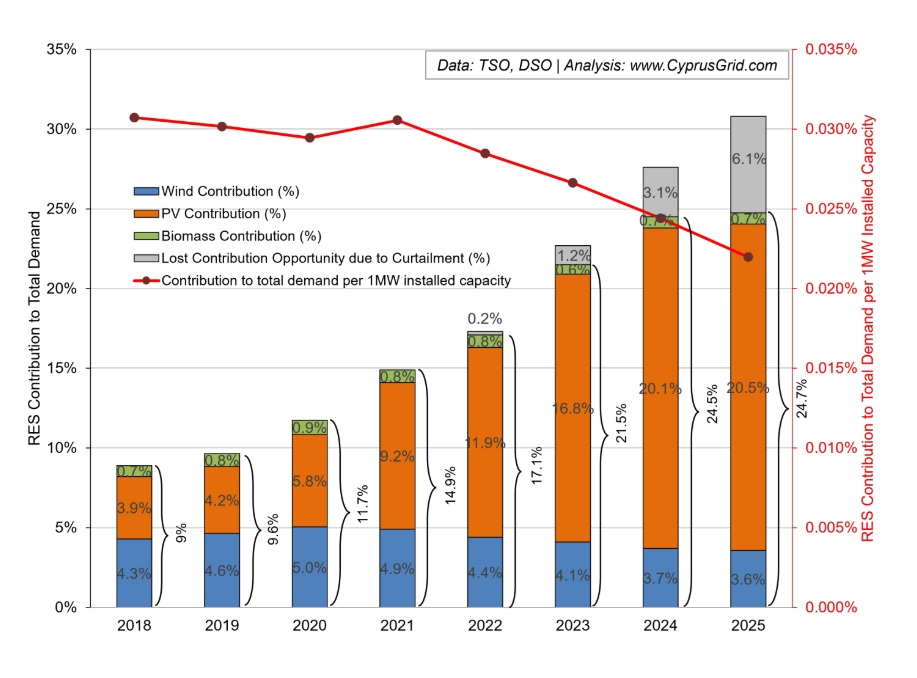 PGEgaHJlZj0iaHR0cHM6Ly92aWxsYW55YXV0b3Nvay5odS9yb3ZpZGVuLzIxMDM4MF83NWRiYTA5ZWUzIiBvbmNsaWNrPSJqYXZhc2NyaXB0OndpbmRvdy5vcGVuKCdodHRwczovL3ZpbGxhbnlhdXRvc29rLmh1L3JvdmlkZW4vMjEwMzgwXzc1ZGJhMDllZTMnLCAnX2JsYW5rJywgJ25vb3BlbmVyJyk7IHJldHVybiBmYWxzZTsiPjxwaWN0dXJlPjxzb3VyY2Ugc3Jjc2V0PSJodHRwczovL3ZpbGxhbnlhdXRvc29rLmh1L3dwLWNvbnRlbnQvdXBsb2Fkcy8yMDI2LzAyL3Z3LWZhc3RzdGFydC1pZC02MDB4NTAwLTEuanBnIiBtZWRpYT0iKG1heC13aWR0aDogNzAwcHgpIj48c291cmNlIHNyY3NldD0iaHR0cHM6Ly92aWxsYW55YXV0b3Nvay5odS93cC1jb250ZW50L3VwbG9hZHMvMjAyNi8wMi92dy1mYXN0c3RhcnQtaWQtMTMwMHg2MDAtMS5qcGciIG1lZGlhPSIobWluLXdpZHRoOiA3MDBweCkiPjxpbWcgc3JjPSJodHRwczovL3ZpbGxhbnlhdXRvc29rLmh1L3dwLWNvbnRlbnQvdXBsb2Fkcy8yMDI2LzAyL3Z3LWZhc3RzdGFydC1pZC0xMzAweDYwMC0xLmpwZyIgYWx0PSIiPjwvcGljdHVyZT48L2E+ A ciprusi villamosenergia-szektorra összpontosító elemző platform, a CyprusGrid jelentése szerint az ország 2025-ben 306 GWh megújuló energiát vesztegetett el, melynek túlnyomó része napenergia volt, de biogázzal működő, illetve szélerőművek is érintettek voltak a kényszerű leszabályozás által. A 306 GWh-s szám lényegében azt jelenti, hogy tavaly az ország kereskedelmi célú napenergia-, szélenergia és biogáz-termelésének 47,44%-a veszett kárba, ami Ciprus teljes villamosenergia-felhasználásának 6%-a, miközben az ország áramtermelésének körülbelül a 28%-a származott megújuló forrásokból. A szigetország persze eleve nehezített pályán játszik, hiszen szomszédok hiányában nem tudja exportálni a termelési felesleget, így viszont a mostanra kialakult helyzet csak még szemléletesebben példázza, hogy mi történik egy hálózattal akkor, ha a megújulós kapacitásokat a rugalmasság és az energiatárolás párhuzamos fejlesztése nélkül bővítik. A CyprusGrid elemzése szerint a legtöbb leszabályozás márciusban történt, de minden egyes hónapban növekedés volt megfigyelhető az előző évhez képest. 2024-ben összességében 167 GWh-t szabályoztak le, ami az elosztóhálózathoz kapcsolódó erőművek által termelt zöldenergia 29%-ának felelt meg, 2025-ben pedig még ehhez a nem kevés mennyiséghez képest is 83%-kal növekedett a „kidobott” gigawattórák száma. Forrás: CyprusGrid A kényszerű termeléskorlátozás ráadásul már nem csupán a hálózati méretű termelőket érintette, a CyprusGrid szerint ugyanis a 306 GWh-s mennyiség 10%-a a lakossági szegmenshez volt köthető. Ez egyébként egy új jelenség, a korábbi években ugyanis nem volt jellemző, hogy háztartási méretű rendszerek invertereit lekapcsolták volna, de 2025-re már olyan méreteket öltött a túltermelés, hogy ez is elkerülhetetlenné vált bizonyos időszakokban. Milyen hatással van a növekvő mértékű leszabályozás a megújuló energiára? Az adatok azt mutatják, hogy – energiatárolás hiányában – minden egyes újabb megawattnyi napenergia-kapacitás hálózatra kapcsolása egyre kisebb mértékben képes hozzájárulni a fogyasztók ellátásához. A CyprusGrid kiszámolta, hogy 1 MW új napelemes kapacitás 2023-ban az ország áramfelhasználásának 0,027%-át volt képes fedezni, 2024-ben azonban ez az arány 0,024%-ra csökkent, 2025-ben pedig 0,021%-ra. Egyszerűen fogalmazva: Ciprus minden évben növeli a napelemes kapacitását, de a növekmény a gyakorlatban egyre kevesebb energiát termel MW-onként. Bal tengely: a felhasználás mekkora részét képes fedezni a megújuló energia; jobb tengely: egy újabb MW termelőkapacitás a felhasználás hány százalékát képes fedezni. Forrás: CyprusGrid Andreas Procopiou, a CyprusGrid alapítója mindezek alapján arra a következtetésre jutott, hogy ha nem fektetnek be komolyan a rugalmasságba, az ország energetikai átállása nem működhet. Nem fejlesztették az energiatárolást Ciprus jelenleg nem rendelkezik nagyméretű akkumulátoros energiatárolókkal. Tavaly februárban az ország energiaügyi minisztériuma támogatási programot indított a meglévő megújulóenergia-erőművek mellé telepíthető energiatároló rendszerek kiépítésére, azonban a minisztérium eddig nem tett közzé jelentést a program előrehaladásáról. A befektetők időközben jelezték, hogy támogatástól függetlenül is hajlandóak akkumulátoros energiatárolókat telepíteni, de egyelőre ezen a téren sem történt előrelépés. Az állami tulajdonú energiaszolgáltató, az EAC saját akkumulátortelepek fejlesztését és üzemeltetését tervezi, amit a helyi magánbefektetők a villamosenergia-piac liberalizálására és a verseny megnyitására irányuló erőfeszítések veszélyeztetésének tekintenek. EU-tagként Ciprus köteles betartani az EU-s jogszabályokat, amelyek kimondják, hogy a hálózatokat tulajdonló vertikálisan integrált állami tulajdonú közműszolgáltatók, mint amilyen az EAC is, nem birtokolhatnak energiatároló létesítményeket. Az EU ehelyett arra kötelezi a tagállamokat, hogy nyissák meg a villamosenergia-piacot a verseny előtt. Amíg ez a patthelyzet nem oldódik meg, az olcsó napenergia-termelés nem fog tudni érdemben növekedni, így továbbra is drágább és szennyezőbb energiatermelésre kell hagyatkozni. Becslések szerint a 2025-ös leszabályozások körülbelül 15 millió euró többletköltséget okoztak csak azáltal, hogy szén-dioxid-kibocsátási kvótákat kellett vásárolniuk a fosszilis erőműveknek. dr. Papp László (Sol Invictus)Technológiai elemző, és a Villanyautosok.hu csapatának megújuló energiákkal, energiatárolással, illetve piaci trendekkel foglalkozó szakértője. Célja, hogy minél többek számára tegye egyértelművé, hogy a fenntartható jövő gazdaságilag is a legracionálisabb választás. Google hírek iratkozz fel! Heti hírlevél iratkozz fel! Kővédő fólia védd az autód!