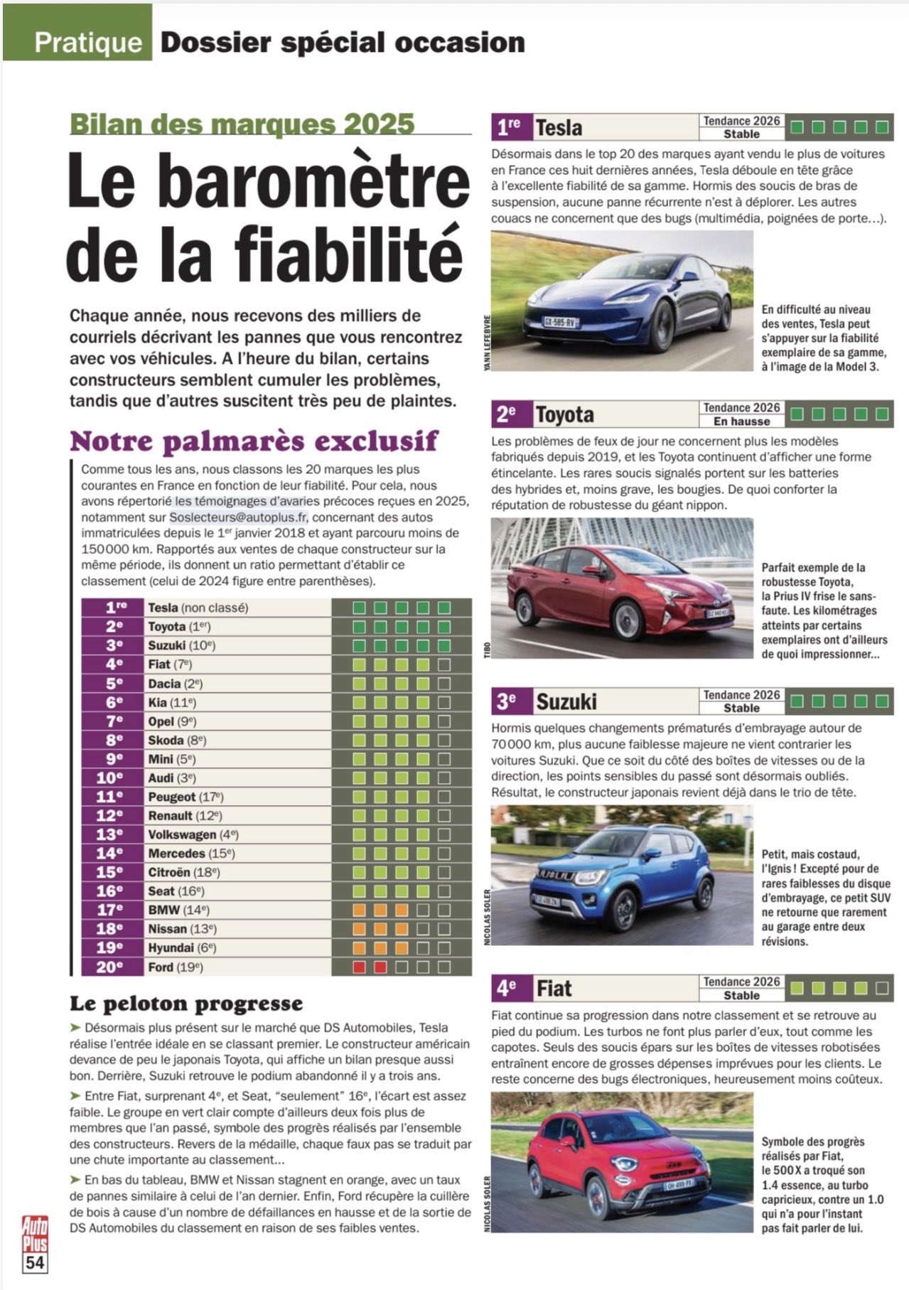PGEgaHJlZj0iaHR0cHM6Ly92aWxsYW55YXV0b3Nvay5odS9yb3ZpZGVuLzIxMDM4MF83NWRiYTA5ZWUzIiBvbmNsaWNrPSJqYXZhc2NyaXB0OndpbmRvdy5vcGVuKCdodHRwczovL3ZpbGxhbnlhdXRvc29rLmh1L3JvdmlkZW4vMjEwMzgwXzc1ZGJhMDllZTMnLCAnX2JsYW5rJywgJ25vb3BlbmVyJyk7IHJldHVybiBmYWxzZTsiPjxwaWN0dXJlPjxzb3VyY2Ugc3Jjc2V0PSJodHRwczovL3ZpbGxhbnlhdXRvc29rLmh1L3dwLWNvbnRlbnQvdXBsb2Fkcy8yMDI2LzAyL3Z3LWZhc3RzdGFydC1pZC02MDB4NTAwLTEuanBnIiBtZWRpYT0iKG1heC13aWR0aDogNzAwcHgpIj48c291cmNlIHNyY3NldD0iaHR0cHM6Ly92aWxsYW55YXV0b3Nvay5odS93cC1jb250ZW50L3VwbG9hZHMvMjAyNi8wMi92dy1mYXN0c3RhcnQtaWQtMTMwMHg2MDAtMS5qcGciIG1lZGlhPSIobWluLXdpZHRoOiA3MDBweCkiPjxpbWcgc3JjPSJodHRwczovL3ZpbGxhbnlhdXRvc29rLmh1L3dwLWNvbnRlbnQvdXBsb2Fkcy8yMDI2LzAyL3Z3LWZhc3RzdGFydC1pZC0xMzAweDYwMC0xLmpwZyIgYWx0PSIiPjwvcGljdHVyZT48L2E+ A Tesla váltotta a Toyotát a személyautók megbízhatósági listájának élén az Auto Plus francia autós lap éves statisztikájában. Az eredmény rendkívül meglepő, hiszen a németeknél az amerikai gyártó a lista végén kullog. Erős belépő A legnagyobb francia autós lap az Auto Plus szokásos éves megbízhatósági ranglistája a múlt pénteken jelent meg a nyomtatott kiadásban, és most először szerepel a Tesla rajta. Nem kis meglepetésre az amerikai gyártó rögtön az első helyen debütált, miközben nem kisebb szereplőt, mint a Toyotát utasította a második helyre. Forrás: Auto Plus 26.02.06, @Eymeric63974, X.com A francia lap mindig az adott évben jelentett meghibásodások számából dolgozik, a 2025-ös listába pedig azok az autók kerülhettek be, amelyek 2018 január 1 után kerültek forgalomba és kevesebb, mint 150.000 km van bennük. A Tesla első tömegmodellje, a Model 3 2019 februárjában jelent meg Európában, és az eladott darabszámmal most először kvalifikálta magát a gyártó a listába. Az Auto Plus kiemeli, hogy a Tesla az elmúlt nyolc évben Franciaország 20 legkelendőbb márkája között szerepelt az eladásokban és azmárka a kiváló megbízhatóságuknak köszönhetően vette át az első helyet. Az adataik alapján a lengőkarokkal kapcsolatos problémákon kívül nem nagyon fordulnak elő tömegesen visszatérő hibák, kisebb meghibásodásokat a multimédia rendszer és a kilincsek mutatnak. Bár a pontos mérési módszert nem ismerjük, valahogy az az érzésünk, a Model S és X a kis darabszám miatt nem nyomott túl sokat a latban, ellenkező esetben valószínűleg nem lenne ilyen rövid a lista. Valaki hazudik? A fenti eredmény azonban szöges ellentétben áll azzal, amit a német autóklub, illetve a nekik adatot szolgáltató TÜV adatai alapján minden évben megír a sajtó, miszerint a Teslák a hibalista végén kullognak. Felmerül a kérdés, valaki hazudik-e, hogyan lehet a két eredmény ennyire eltérő. A válasz valószínűleg nem valami összeesküvés-elméletben, hanem az eltérő metodikában keresendő. A francia lap ugyanis a tényleges meghibásodásokat veszi számba, míg a németek a műszaki vizsgák adatait dolgozzák fel. Ezért buknak el a Teslák a német műszaki vizsgán Ahogy arról már korábban írtunk, a TÜV által végzett műszaki vizsgák legsúlyosabb feltárt hiányosságai a Tesla esetében a felületi rozsdás féktárcsák, a fényszórók beállítása és a lengőkarok állapota szokott lenni. Erre a magyarázat az, hogy mire az átlag német új autó háromévesen eljut a műszaki állomásra, a legtöbb márka esetében már minimum három éves szervizen túl van, míg a Teslánál nincs kötelező felülvizsgálat, csak egy opcionális kétéves szervizintervallum van megadva. Használt Tesla Model 3 – vásárlási útmutató Így a Teslákat a gyár óta először többnyire a TÜV látja, míg a többi márka autói már javított állapotban mennek a vizsgára. A fékek felületi rozsdásodása egyébként házilag is orvosolható, amennyiben a tulajdonos néha használja a hagyományos fékeket is a visszatöltés mellett. Tesla Model 3: itt szoktak az igazi problémák lenni. Mi továbbra is azt ajánljuk a Teslásoknak, hogy a futóművet azért kétévente nézessék át, mivel, ahogy a német és a francia eredmények is mutatják, a lengőkarok – és egyéb kopó futómű-alkatrészek – az autók gyenge pontjai. Használt Tesla Model Y – vásárlási útmutató Ha új Teslát vásárolsz, most 1000 km-re elegendő ingyenes Supercharger töltést (Model 3/Y) vagy 180.000 Ft árengedményt (Model S/X) kaphatsz. Ehhez használhatod Szöcske, vagy Balázs ajánlói kódját is. PGEgaHJlZj0iaHR0cHM6Ly92aWxsYW55YXV0b3Nvay5odS9yb3ZpZGVuLzE4MDYyMV81ZjhmZjlkZTE0IiBvbmNsaWNrPSJqYXZhc2NyaXB0OndpbmRvdy5vcGVuKCdodHRwczovL3ZpbGxhbnlhdXRvc29rLmh1L3JvdmlkZW4vMTgwNjIxXzVmOGZmOWRlMTQnLCAnX2JsYW5rJywgJ25vb3BlbmVyJyk7IHJldHVybiBmYWxzZTsiPjxwaWN0dXJlPjxzb3VyY2Ugc3Jjc2V0PSJodHRwczovL3ZpbGxhbnlhdXRvc29rLmh1L3dwLWNvbnRlbnQvdXBsb2Fkcy8yMDI1LzAyL2V6Z2lmY29tLWdpZi10by13ZWJwLWNvbnZlcnRlci0zLmdpZiIgbWVkaWE9IihtaW4td2lkdGg6IDcwMHB4KSI+PGltZyBzcmM9Imh0dHBzOi8vdmlsbGFueWF1dG9zb2suaHUvd3AtY29udGVudC91cGxvYWRzLzIwMjUvMDIvZXpnaWZjb20tZ2lmLXRvLXdlYnAtY29udmVydGVyLTMuZ2lmIiBhbHQ9IiI+PC9waWN0dXJlPjwvYT4= Biró BalázsA fenntartható közlekedés elkötelezett híve, akit elsősorban a Tesla céltudatos és piacot felforgató tevékenysége rántott magával ebbe a világba, így publikációi elsősorban erre a területre koncentrálnak. Google hírek iratkozz fel! Heti hírlevél iratkozz fel! Kővédő fólia védd az autód!