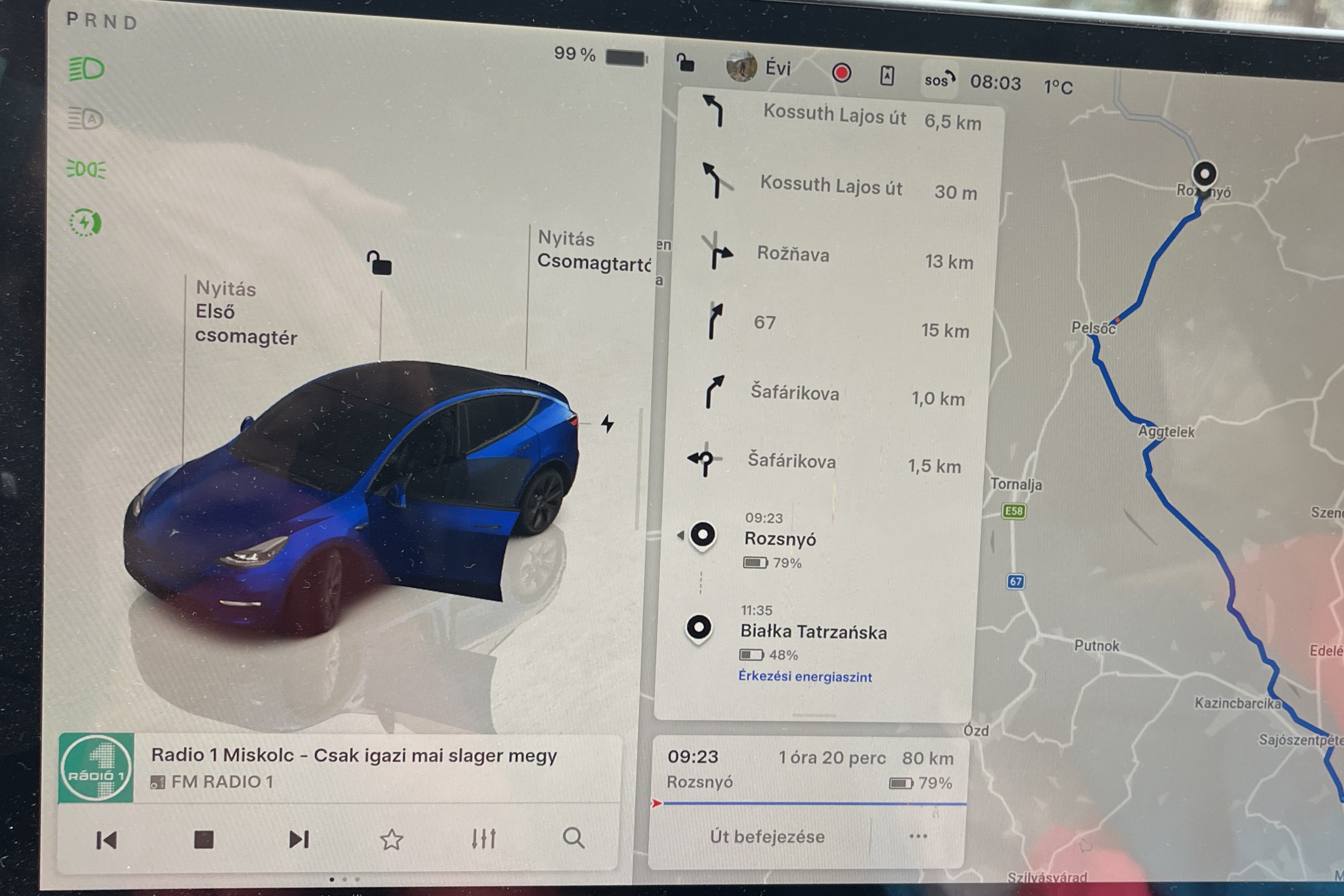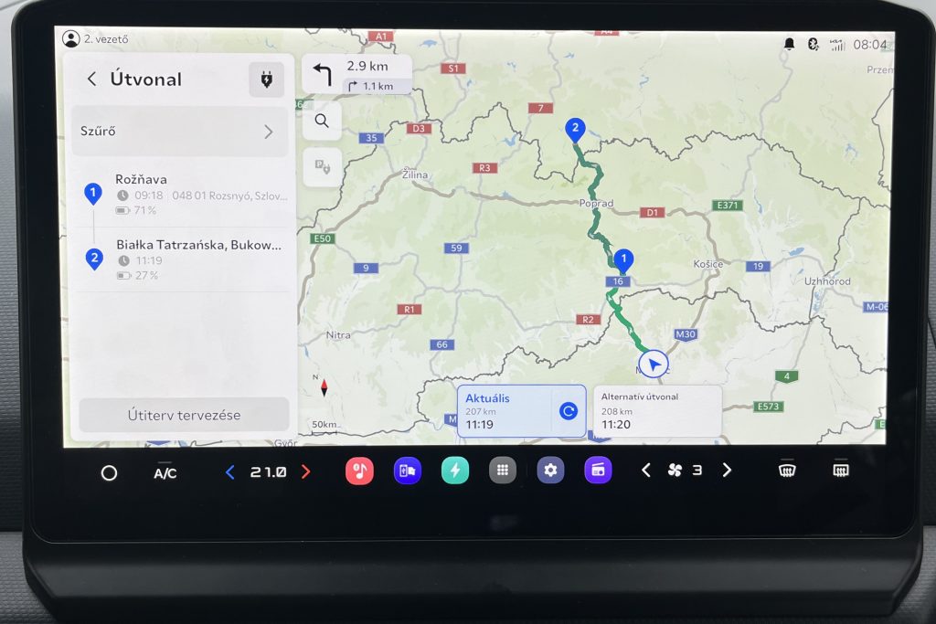 PGEgaHJlZj0iaHR0cHM6Ly92aWxsYW55YXV0b3Nvay5odS9yb3ZpZGVuLzIxMTYyMV82YzhiOGRhNDU3IiBvbmNsaWNrPSJqYXZhc2NyaXB0OndpbmRvdy5vcGVuKCdodHRwczovL3ZpbGxhbnlhdXRvc29rLmh1L3JvdmlkZW4vMjExNjIxXzZjOGI4ZGE0NTcnLCAnX2JsYW5rJywgJ25vb3BlbmVyJyk7IHJldHVybiBmYWxzZTsiPjxwaWN0dXJlPjxzb3VyY2Ugc3Jjc2V0PSJodHRwczovL3ZpbGxhbnlhdXRvc29rLmh1L3dwLWNvbnRlbnQvdXBsb2Fkcy8yMDI2LzAyL2xlYWQtb21vZGEtajUtZXYtbzUtZXYtcHBjLTAzLTA2LTYwMC14LTUwMC1tb2JpbC5qcGciIG1lZGlhPSIobWF4LXdpZHRoOiA3MDBweCkiPjxzb3VyY2Ugc3Jjc2V0PSJodHRwczovL3ZpbGxhbnlhdXRvc29rLmh1L3dwLWNvbnRlbnQvdXBsb2Fkcy8yMDI2LzAyL2xlYWQtb21vZGEtajUtZXYtbzUtZXYtcHBjLTAzLTA1LTEzMDAteC02MDAtZGVza3RvcC5qcGciIG1lZGlhPSIobWluLXdpZHRoOiA3MDBweCkiPjxpbWcgc3JjPSJodHRwczovL3ZpbGxhbnlhdXRvc29rLmh1L3dwLWNvbnRlbnQvdXBsb2Fkcy8yMDI2LzAyL2xlYWQtb21vZGEtajUtZXYtbzUtZXYtcHBjLTAzLTA1LTEzMDAteC02MDAtZGVza3RvcC5qcGciIGFsdD0iIj48L3BpY3R1cmU+PC9hPg==PGEgaHJlZj0iaHR0cHM6Ly92aWxsYW55YXV0b3Nvay5odS9yb3ZpZGVuLzIxMTYyMV9iZTc2MGU1NWEzIiBvbmNsaWNrPSJqYXZhc2NyaXB0OndpbmRvdy5vcGVuKCdodHRwczovL3ZpbGxhbnlhdXRvc29rLmh1L3JvdmlkZW4vMjExNjIxX2JlNzYwZTU1YTMnLCAnX2JsYW5rJywgJ25vb3BlbmVyJyk7IHJldHVybiBmYWxzZTsiPjxwaWN0dXJlPjxzb3VyY2Ugc3Jjc2V0PSJodHRwczovL3ZpbGxhbnlhdXRvc29rLmh1L3dwLWNvbnRlbnQvdXBsb2Fkcy8yMDI2LzAyL2xlYWQtamFlY29vLWo1LWV2LW1vYmlsLTIwMjYtMDItMjMuanBnIiBtZWRpYT0iKG1heC13aWR0aDogNzAwcHgpIj48c291cmNlIHNyY3NldD0iaHR0cHM6Ly92aWxsYW55YXV0b3Nvay5odS93cC1jb250ZW50L3VwbG9hZHMvMjAyNi8wMi9sZWFkLWphZWNvby1qNS1ldi1vNS1ldi1wcGMtMDMtMDItMTMwMC14LTYwMC1kZXNrdG9wLTIwMjYtMDItMjMuanBnIiBtZWRpYT0iKG1pbi13aWR0aDogNzAwcHgpIj48aW1nIHNyYz0iaHR0cHM6Ly92aWxsYW55YXV0b3Nvay5odS93cC1jb250ZW50L3VwbG9hZHMvMjAyNi8wMi9sZWFkLWphZWNvby1qNS1ldi1vNS1ldi1wcGMtMDMtMDItMTMwMC14LTYwMC1kZXNrdG9wLTIwMjYtMDItMjMuanBnIiBhbHQ9IiI+PC9waWN0dXJlPjwvYT4= Idén két autóval, a KIA PV5 személyszállító változatával, és a saját Tesla Model Y-nal mentünk síelni Miskolcról Lengyelországba, Bialka Tatrzanskára. A táv nem nagy, bő 200 km, így a legtöbb mai elektromos autó töltés nélkül odaér. Az út azonban lehetőséget adott a két autó összehasonlítására. PGEgaHJlZj0iaHR0cHM6Ly92aWxsYW55YXV0b3Nvay5odS9yb3ZpZGVuLzIxMTU0MF85ZWNmNTcxYTk5IiBvbmNsaWNrPSJqYXZhc2NyaXB0OndpbmRvdy5vcGVuKCdodHRwczovL3ZpbGxhbnlhdXRvc29rLmh1L3JvdmlkZW4vMjExNTQwXzllY2Y1NzFhOTknLCAnX2JsYW5rJywgJ25vb3BlbmVyJyk7IHJldHVybiBmYWxzZTsiPjxwaWN0dXJlPjxzb3VyY2Ugc3Jjc2V0PSJodHRwczovL3ZpbGxhbnlhdXRvc29rLmh1L3dwLWNvbnRlbnQvdXBsb2Fkcy8yMDI2LzAyL2N1dG91dC0xLXNvYWxya2l0LXNvbGF4LW90dGhvbmktZW5lcmdpYXRhcm9sby1wcm9ncmFtLTEyMDB4MTYwMHB4LXYxLmpwZyIgbWVkaWE9IihtaW4td2lkdGg6IDcwMHB4KSI+PGltZyBzcmM9Imh0dHBzOi8vdmlsbGFueWF1dG9zb2suaHUvd3AtY29udGVudC91cGxvYWRzLzIwMjYvMDIvY3V0b3V0LTEtc29hbHJraXQtc29sYXgtb3R0aG9uaS1lbmVyZ2lhdGFyb2xvLXByb2dyYW0tMTIwMHgxNjAwcHgtdjEuanBnIiBhbHQ9IiI+PC9waWN0dXJlPjwvYT4=PGEgaHJlZj0iaHR0cHM6Ly92aWxsYW55YXV0b3Nvay5odS9yb3ZpZGVuLzIxMTU0MF9hYmIwNGFmZjAyIiBvbmNsaWNrPSJqYXZhc2NyaXB0OndpbmRvdy5vcGVuKCdodHRwczovL3ZpbGxhbnlhdXRvc29rLmh1L3JvdmlkZW4vMjExNTQwX2FiYjA0YWZmMDInLCAnX2JsYW5rJywgJ25vb3BlbmVyJyk7IHJldHVybiBmYWxzZTsiPjxwaWN0dXJlPjxzb3VyY2Ugc3Jjc2V0PSJodHRwczovL3ZpbGxhbnlhdXRvc29rLmh1L3dwLWNvbnRlbnQvdXBsb2Fkcy8yMDI2LzAyL2N1dG91dC0yLXNvYWxya2l0LXNvbGF4LW90dGhvbmktZW5lcmdpYXRhcm9sby1wcm9ncmFtLTEyMDB4MTYwMHB4LXYyLmpwZyIgbWVkaWE9IihtaW4td2lkdGg6IDcwMHB4KSI+PGltZyBzcmM9Imh0dHBzOi8vdmlsbGFueWF1dG9zb2suaHUvd3AtY29udGVudC91cGxvYWRzLzIwMjYvMDIvY3V0b3V0LTItc29hbHJraXQtc29sYXgtb3R0aG9uaS1lbmVyZ2lhdGFyb2xvLXByb2dyYW0tMTIwMHgxNjAwcHgtdjIuanBnIiBhbHQ9IiI+PC9waWN0dXJlPjwvYT4= Jogosan merül fel persze a kérdés, hogy mi értelme két ennyire eltérő autót összehasonlítani, amire a válaszom: ha engem érdekelt, talán másokat is fog. Miért síelünk Lengyelországban? Miskolchoz közel van és nagyon gyerekbarát síterep. Modern, ülésfűtéses felvonók, széles, nem túlságosan meredek pályák, és ami a számunkra a legfontosabb: itt egy naptári nap két sínap. A legtöbb síterepen 16-17 órakor záróra, de a kisgyerekek úgysem bírják reggeltől zárásig. Bialka Tatrzanskán azonban a teljes terület este 10-ig ki van világítva, így egy hosszabb ebéd utáni pihenővel belefér délelőtt 4-5, késő délután pedig további 2-3 óra síelés. Miskolc és Bialka Tatrzanska között egy gyorsabb (3 óra), jelentős részben autópályás, 250 km-es (Miskolc-Kassa-Bialka Tatrzanska), valamint egy rövidebb, 210 km-es, hegyvidéki, lassabb (3:30) útvonal (Miskolc-Rozsnyó-Poprád-Bialka Tatrzanska) közül választhatunk. Számtalanszor jártunk már erre, mikor melyik útvonalon. -8 fok és hajnal 5 óra? Indulás síelni villanyautóval, mi bajunk lehet? Az előző két évben az M30-as autópálya Miskolc-Szikszó közötti szakaszának teljes lezárása miatt eltűnt az autópályás útvonal előnye, idén azonban újra teljes sebességgel haladhatunk. Január végén voltunk is ugyanitt egy egynapos síelésen, akkor autópályán mentünk, és azt tapasztaltuk, hogy a Kassa-Poprád szakaszon annyira nagy volt a forgalom és sok az útépítés miatti 80-100-as sebességkorlátozás, hogy az elméleti félórás előny inkább csak 10-15 percet jelent a gyakorlatban. Ezért ezúttal a rövidebb útvonalat választottuk. Mindkét autó mobiltelefonos applikációja lehetőséget biztosít arra, hogy az útvonalat az otthon nyugalmában megtervezzük és a tervet átküldjük az autóba. Meglepő, hogy bár mindkét autó navigációja reálisan tervez, az applikációban megjelenő tervek nem ennyire pontosak. A Tesla esetében csak néhány százalékos eltérésről beszélünk, a KIA Connect applikáció azonban teljesen irreális 50%-os maradék töltöttséggel történő célba érést jósolt oda, ahová az autó 27%-ost. A Kia Connect másik hiányossága, hogy az autónak – valószínűleg – csak a végső célt, nem a teljes tervet küldi át. Legalábbis hiába választottam ki és küldtem át a rövid útvonalat, az autó a hosszabb, autópályás útvonalon vezetett volna. A reggel 8-ra tervezett indulásból 8:20 lett, a KI