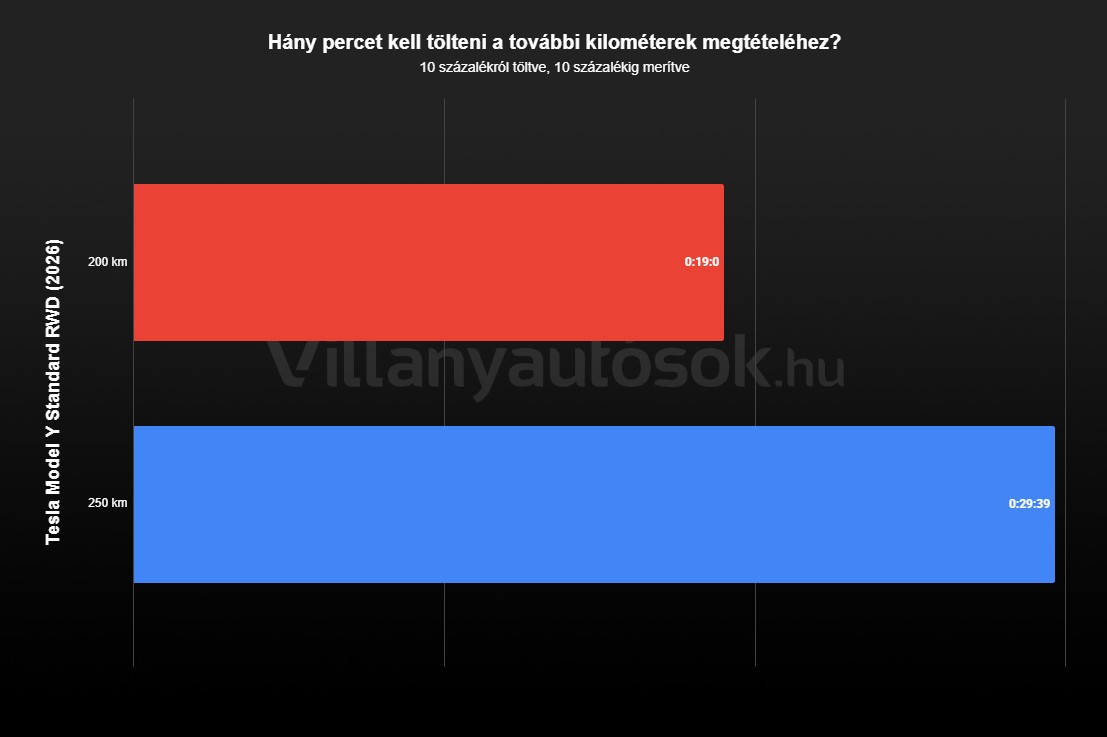 PGEgaHJlZj0iaHR0cHM6Ly92aWxsYW55YXV0b3Nvay5odS9yb3ZpZGVuLzIxMzM1Ml9lOTAxYTFmMWQ2IiBvbmNsaWNrPSJqYXZhc2NyaXB0OndpbmRvdy5vcGVuKCdodHRwczovL3ZpbGxhbnlhdXRvc29rLmh1L3JvdmlkZW4vMjEzMzUyX2U5MDFhMWYxZDYnLCAnX2JsYW5rJywgJ25vb3BlbmVyJyk7IHJldHVybiBmYWxzZTsiPjxwaWN0dXJlPjxzb3VyY2Ugc3Jjc2V0PSJodHRwczovL3ZpbGxhbnlhdXRvc29rLmh1L3dwLWNvbnRlbnQvdXBsb2Fkcy8yMDI2LzAzL2xlYWQtcHY1LWNhcmdvLTYwMHg1MDAtMjAyNi0wMy0xNi0xLmpwZyIgbWVkaWE9IihtYXgtd2lkdGg6IDcwMHB4KSI+PHNvdXJjZSBzcmNzZXQ9Imh0dHBzOi8vdmlsbGFueWF1dG9zb2suaHUvd3AtY29udGVudC91cGxvYWRzLzIwMjYvMDMvbGVhZC1wdjUtY2FyZ28tMTMwMHg2MDAtMjAyNi0wMy0xNi0xLmpwZyIgbWVkaWE9IihtaW4td2lkdGg6IDcwMHB4KSI+PGltZyBzcmM9Imh0dHBzOi8vdmlsbGFueWF1dG9zb2suaHUvd3AtY29udGVudC91cGxvYWRzLzIwMjYvMDMvbGVhZC1wdjUtY2FyZ28tMTMwMHg2MDAtMjAyNi0wMy0xNi0xLmpwZyIgYWx0PSIiPjwvcGljdHVyZT48L2E+PElGUkFNRSBTUkM9Imh0dHBzOi8vYWQuZG91YmxlY2xpY2submV0L2RkbS90cmFja2ltcGkvTjQwMjIuMTU2OTU5UElYSU5GTy5IVS9CMzQ5Nzc5MzQuNDQyNTcxODExO2RjX3Rya19haWQ9NjM1NjY3MjI0O2RjX3Rya19jaWQ9MjQ5NTU5NDY3O29yZD1bdGltZXN0YW1wXTtkY19sYXQ9O2RjX3JkaWQ9O3RhZ19mb3JfY2hpbGRfZGlyZWN0ZWRfdHJlYXRtZW50PTt0ZnVhPTtnZHByPSR7R0RQUn07Z2Rwcl9jb25zZW50PSR7R0RQUl9DT05TRU5UXzc1NX07bHRkPTtkY190ZHY9MT8iIFdJRFRIPTEgSEVJR0hUPTEgTUFSR0lOV0lEVEg9MCBNQVJHSU5IRUlHSFQ9MCBIU1BBQ0U9MCBWU1BBQ0U9MCBGUkFNRUJPUkRFUj0wIFNDUk9MTElORz1ubyBCT1JERVJDT0xPUj0nIzAwMDAwMCc+PC9JRlJBTUU+ (folytatás az előző oldalról)Használatban Amikor bejelentették az új belépő modellt, kicsit aggódva néztük, hogy a gyártó egyszerűbb futóműre váltott, amely már nem frekvencia-adaptív, illetve elhagyják a dupla üvegezést is. Visszatérnek a keményen rázós és autópályán zajos Teslák? Szerencsére nem. Ha ez valakinek segít, úgy fogalmaznék, hogy a futómű valahol a régi Teslák sportos, de kemény rugózása és a Highland/Juniper frissítéssel a Model 3, illetve Y prémium változatainál használt adaptív megoldása között van, de inkább utóbbihoz közel. Úgy is mondhatnám, hogy, ha bekötnék a szememet és elvinnének egy tesztpályára a standard, illetve prémium autókkal, akkor talán meg tudnám mondani a különbséget, ha kifejezetten erre kihegyezett tesztcsíkon mennénk. A korábbinál kényelmesebb futómű viszont továbbra is sportos, a Model 3-hoz képest csak egy kicsit billeg jobban a kanyarokban a magasabb építésű Y és a dimbes-dombos országutakon sincs hullámzás, vízágy-effektus. Zajszint a két első ülés között mérve (dBA) Tesla Model Y RWD (2026) (téli) Tesla Model Y RWD Premium (2025) (nyári) BYD Sealion Excellence (2025) (téli) Hyundai Ioniq 5 LR RWD (2024) (téli) Mercedes-Benz CLA 250+ EQ (2025) (téli) 90 km/h 61,6 61,0 61,5 63,3 61,2 110 km/h 64,4 63,5 64,3 65,4 63,7 130 km/h 66,1 65,4 – 67,3 66,1 140 km/h 67,4 67,0 – 69,5 67,8 Ugyanez igaz a kabin zajszintjére is. Városi tempónál rendkívül csendes az autó, autópályán már emelkedik a zaj, de inkább csak szeles időben lesz feltűnő. A Teslák zajkomfortjára ma már egyáltalán nem lehet panasz. Az alap Y kabinját is óvják a futómű zajától, ilyen a kerékjárat feletti zajfogókkal. A hétköznapi használatban az alapváltozat 300 lóereje és 410 Nm nyomatéka is bőven sok – a gázpedál reakciója azonnali és mindig ott van. Autópályán is elég ez az előzésekhez. De persze a Tesla sem tökéletes. Ott van például az Autopilot, amelybe már nem rak pénzt a cég, évek óta nem fejlődik, így továbbra is sokszor rosszul ismeri fel a sebességhatárokat, viszont ezt 10 km/h-nál nagyobb mértékben csak osztott pályán engedi felülbírálni. És persze a rendszer azt sem tudja, hogy Magyarországon a kereszteződés feloldja a sebességkorlátozást. Viszont a sávot legalább szépen tartja, semmi pingpongozás nincs. A bosszantó hiányosságokat súlyosbítja, hogy Musk csapata végtelen bölcsességében úgy döntött, hogy az új Model 3-tól és Y-tól kezdve még indulás előtt el kell dönteni, hogy sima tempomatot, vagy Autopilotot akarunk használni, ezt nem lehet menet közben szimpla, illetve dupla kattintással tetszés szerint változtatni. Ha én Autopilotra állítom az autót de ő egy 20 kilométeres országúti szakaszon 40-es korlátozást vizionál, akkor vagy nyomom mellé a gázpedált, vagy teljesen kikapcsolom. Azt még megengedi, hogy a menüben ilyenkor leváltsak sima tempomatra – ahol felülírhatom a hibás sebességhatárt, cserébe én kormányzok -, de ezt már később nem tudom visszaváltani Autopilotra, amíg nem állok meg és rakom P-be. Ehhez kötődő probléma, hogy Autopilot használatakor sávváltásnál nem csak a sávtartás kapcsol ki, de a sebességtartás is, így ha nem lépünk a gázra, akkor az autó az egypedálos funkció miatt egyből lassulni kezd. Ez kinek volt az ötlete, és hol lehet őt személyesen felkeresni?! Reméljük jön már az az FSD (Supervised) hozzánk is. Szintén beletörődtek a teslások, hogy főleg este, a különböző sávelhagyás gátlók és asszisztensek rendre azt jelentik, hogy nem, vagy csak csökkentett módban működnek. Az Autopilotot ez általában nem érinti, a parkolóasszisztenst és a sávelhagyás gátlót már annál inkább. Az ok általában az, hogy a B-oszlop kameráját elvakítja valami, vagy nem elég jók a fényviszonyok. És akkor ez így normális?! Továbbra is hiányolom, hogy nem lehet manuálisan újraindítani a 4G modemet. Előfordulnak olyan útszakaszok, ahol gyenge a mobiljel és ilyenkor néha hosszú percekig tart, mire megtalálja a fonalat a zene-streaming, vagy online rádió. De ugyanez a probléma határátlépéskor, roaming esetén is. A fentiek viszont nem specifikusan ehhez a típushoz kapcsolódnak, általános megjegyzések. Van azonban egy olyan szarvashiba a Model Y alapváltozata kapcsán, amit muszáj megemlíteni, mert a tesztautónk mellett két ismerősöm ugyanilyen kocsiját is érinti: A telefonos kihangosító mikrofonjának minősége vállalhatatlan. Gyakorla